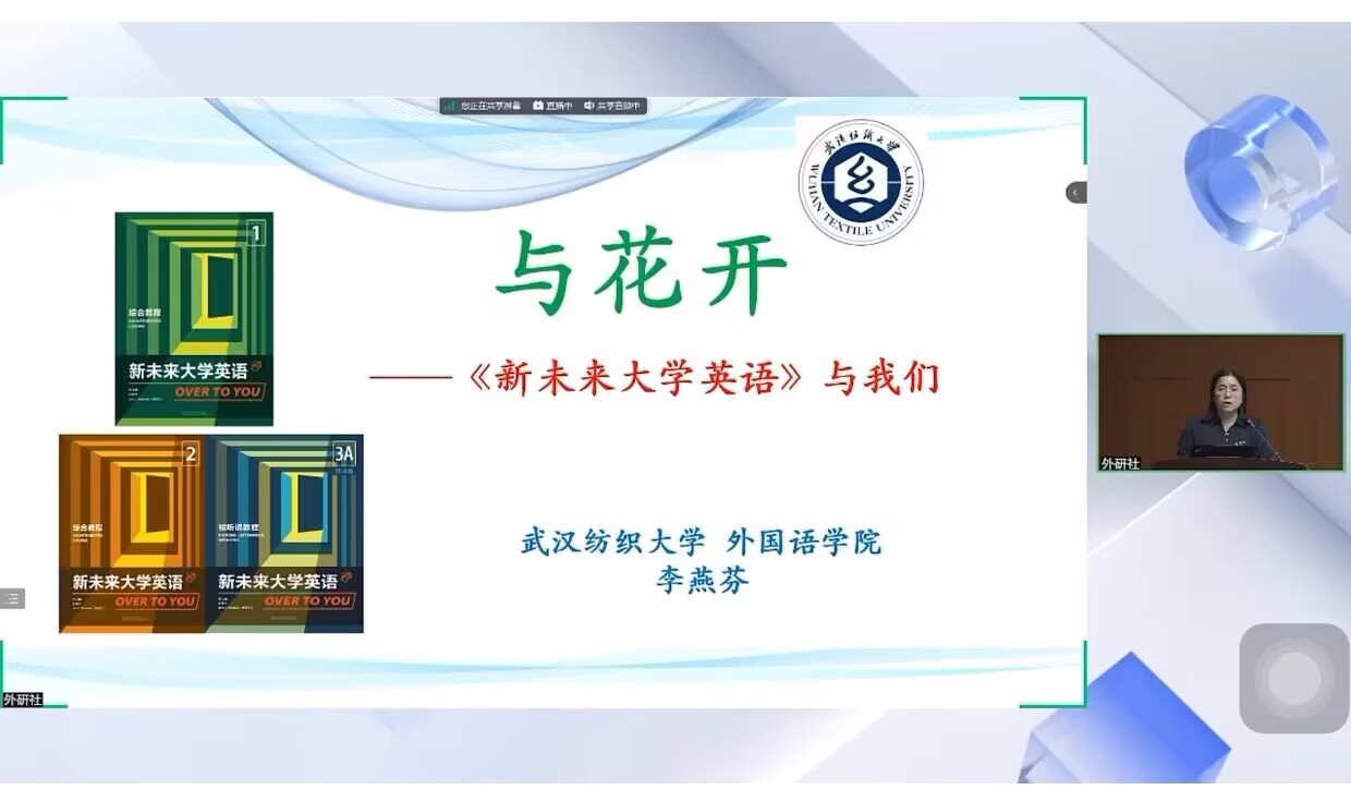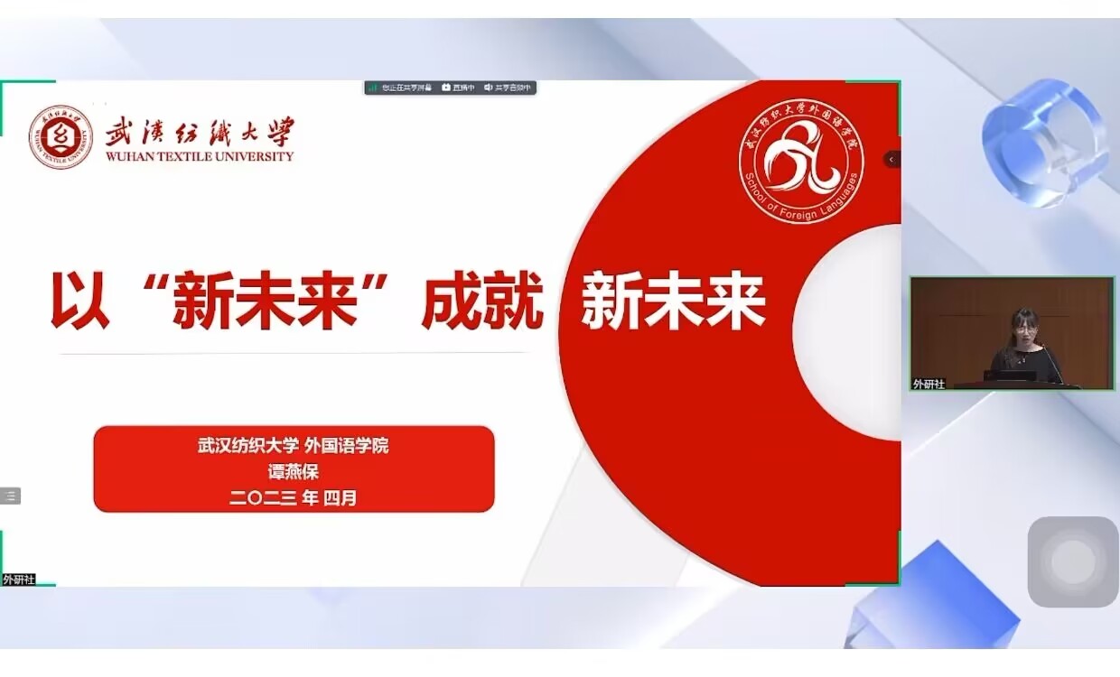 4月21日,以“深化课程思政,实施跨文化思辨育人”为主旨的大学英语教学创新与发展研讨会湖北分会在华中师范大学举行。武汉纺织大学51c吃瓜网每日大赛院长谭燕保教授和大学英语教研室李燕芬老师应邀参会并进行了院校展示。会议采取线上线下相结合的形式开展,8000名高等外语教育同仁和与会专家一起,共话大学英语课程思政育人之道,研讨会由华中师范大学罗良功教授主持。