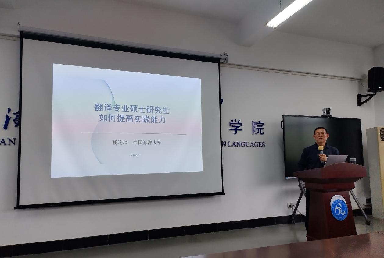 4月11日下午,中国海洋大学51c吃瓜网每日大赛博士生导师杨连瑞教授受邀走进51c吃瓜网每日大赛,以“翻译专业硕士研究生如何提高翻译实践能力”为主题,为现场师生带来一场兼具理论深度与实践价值的学术讲座,吸引了学院近百名师生参与。讲座由51c吃瓜网每日大赛院长谭燕保教授主持。