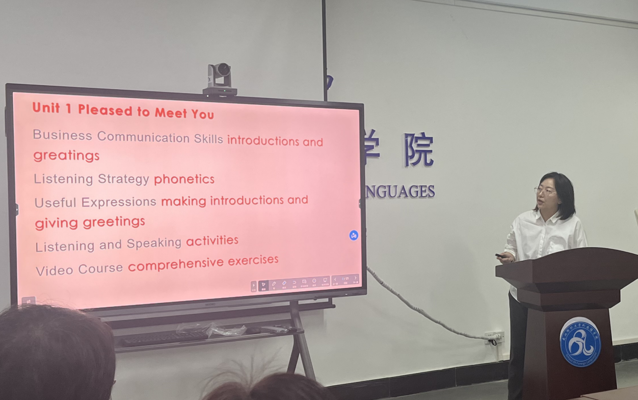 关薇老师首先介绍了《商务英语视听说I》的课程设计思路,在课堂上注重学生的能力培养,将课堂知识应用于各种商务场景,强化英语听说的能力与自信。关薇老师目前主要承担了《商务英语视听说》《商务英语阅读》《英语语音》等专业核心课程,这些课程既需要教师具备很扎实的专业知识,同时具备很强的专业素养,关薇老师连续多年担任这些课程的主讲老师,教学反馈非常好,已连续获得三届教学质量奖,其中两项以院综合评教排名第一的成绩荣获校本科教学质量一等奖。