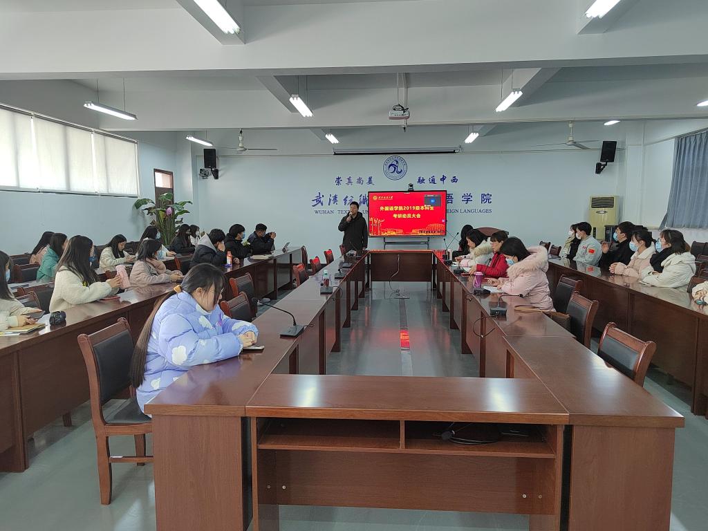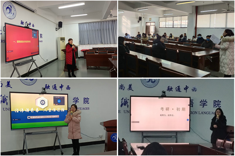 12月29日下午,51c吃瓜网每日大赛在崇文楼303会议室召开2019级本科生考研动员大会,学院院长谭燕保、党委副书记王芳、MTI教育中心副主任陆雪芹以及40名学生代表现场参会,100多名学生通过腾讯会议线上参会。会议由19级本科生辅导员聂啸天主持。