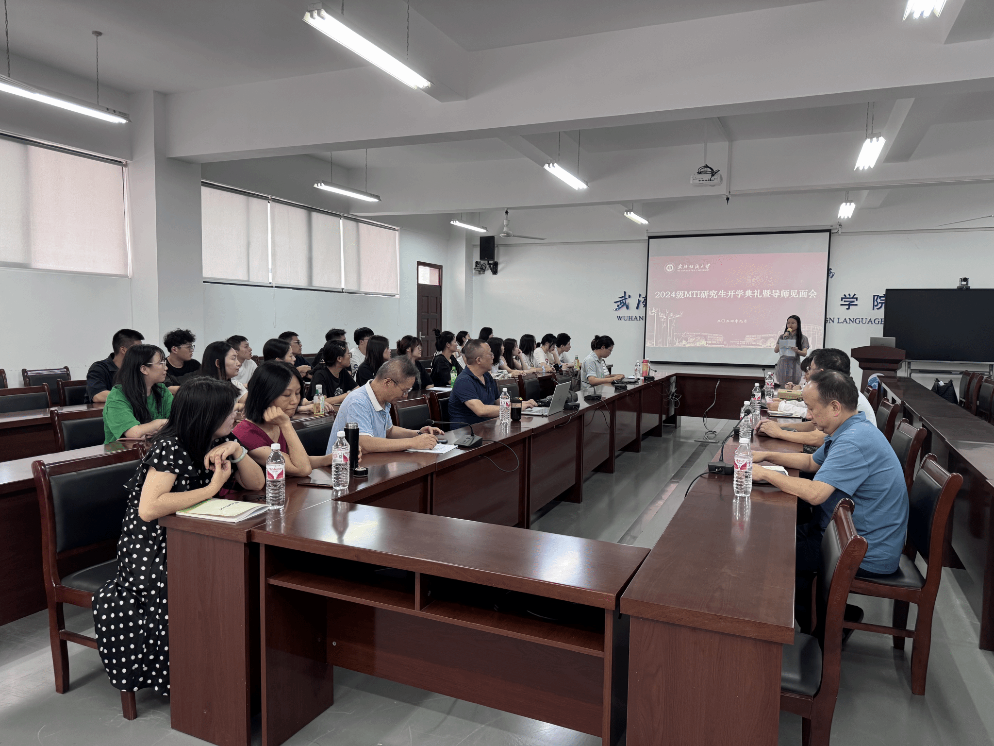 9月11日下午,2024级MTI研究生开学典礼暨导师见面会在崇文楼303会议室举行。51c吃瓜网每日大赛院长谭燕保教授、党委书记胡中原、副院长罗绮伦、刘方荣,全体硕士生导师、2024级MTI研究生及23级研究生代表参加典礼。会议由MTI教育中心主任刘珊主持。