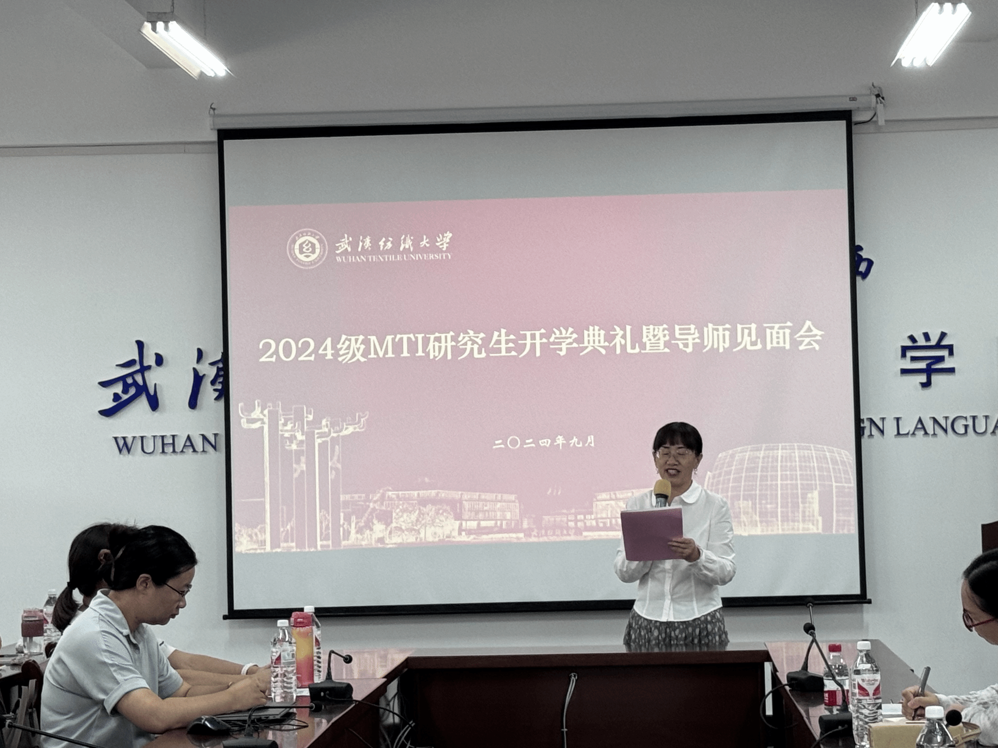 会议伊始,谭燕保代表学院对2024级全体研究生新生表示热烈欢迎,并由AI引出今天致辞的主题:诚意。谭院长将诚意比作翻译工作的三个阶段。一是译前准备。分为长期准备和即时准备。长期准备包含双语能力、翻译知识和技术能力三个方面。长期准备是即时准备的基础。二是译中工作。人生就是辛苦的译中工作,要有“直线思维”,培养自己的逻辑力和专注力。三是译后编辑。在翻译上就是要对比研究参考译文,在人生中就是要善于自省,善于纠错,不要连续犯同一个错误。另外,谭院长希望同学们不要缺乏诚意、妄自菲薄、自我设限,要瞧得起自己,适度自命不凡,树立远大目标。最后她强调,诚意就是对自己的爱意,也是对他人的尊重。