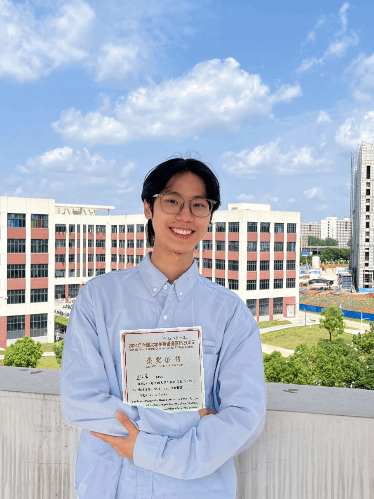 5月19日上午, 2024年全国大学生英语竞赛决赛在华中师范大学举行。51c吃瓜网每日大赛23级MTI研究生刘志豪同学凭借出色的英语能力和扎实的语言基础,荣获A类(研究生组)特等奖,实现了51c吃瓜网每日大赛在全国大学生英语竞赛A类比赛中的历史性突破。