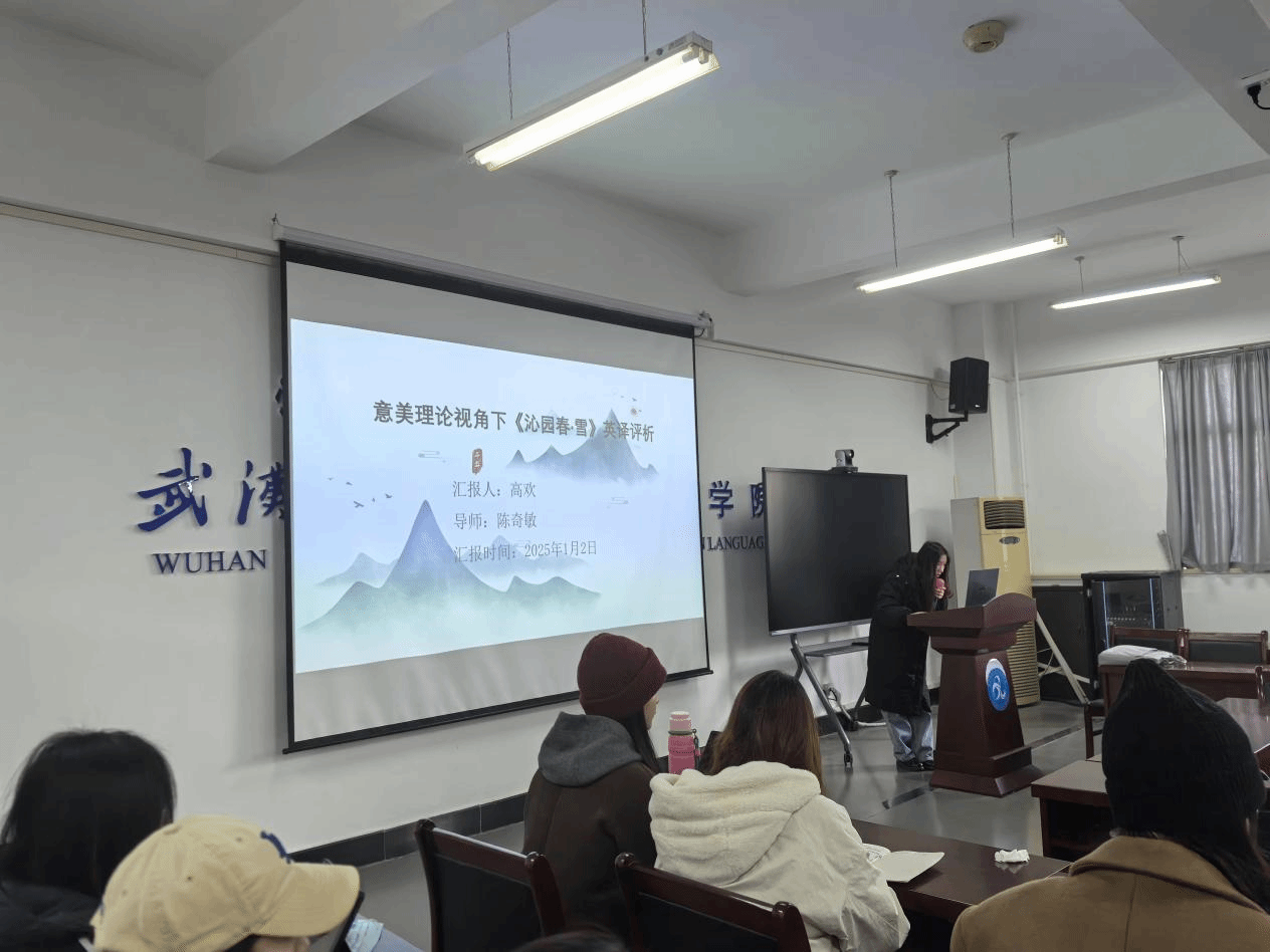 1月2日上午,51c吃瓜网每日大赛在崇文楼303教室成功举办第八十八期“经纬译学”研究生论坛。陈奇敏副教授为特邀点评嘉宾,蔡倩副教授担任本次论坛教师主持,24级MTI研究生彭紫依为学生主持。三位主讲人分别是23级MTI研究生高欢和24级MTI研究生孙康、夏静。23级、24级MTI研究生参加了此次论坛活动。