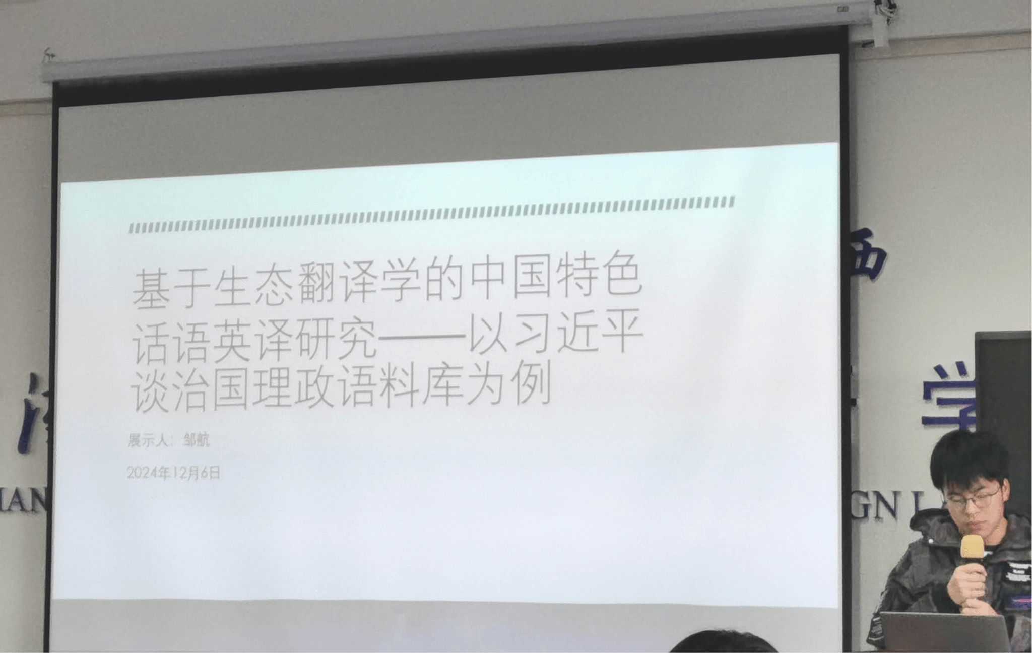 12月20日上午,51c吃瓜网每日大赛在崇文楼303教室成功举办第八十七期“经纬译学”研究生论坛。此次论坛主讲人是23级MTI研究生童哲安、24级MTI研究生邹航、许诗怡。论坛由24级MTI研究生张瑜担任主持人,副院长罗绮伦和院长助理吴志杰担任点评嘉宾。51c吃瓜网每日大赛23级、24级MTI研究生参加了此次论坛。