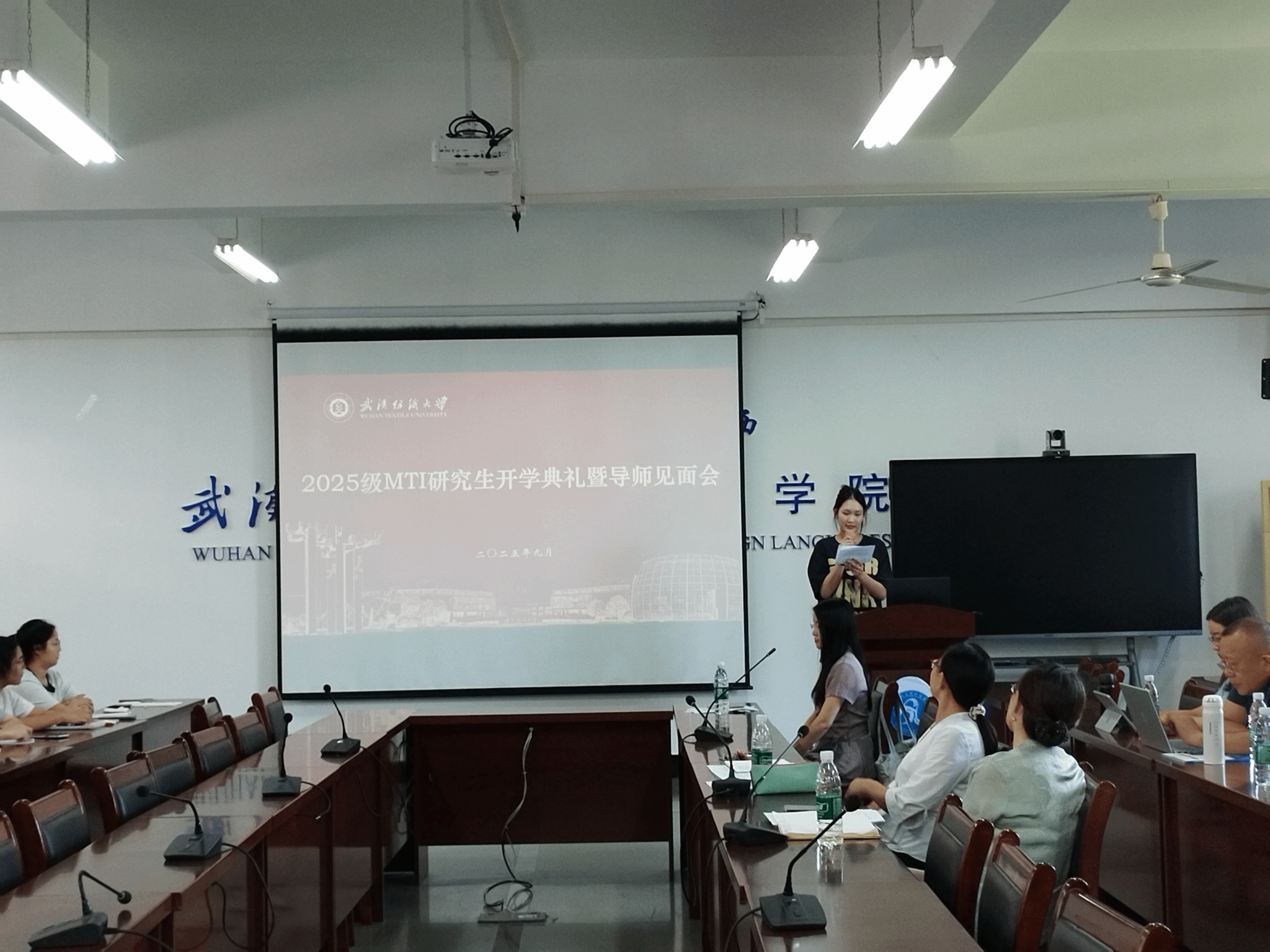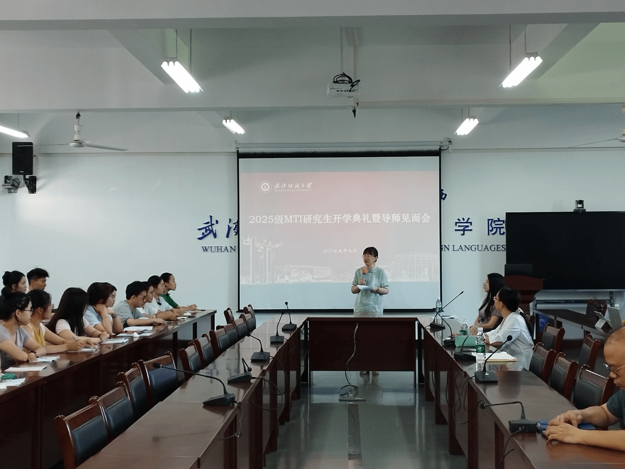 9月17日下午,2025级MTI研究生开学典礼暨导师见面会在崇文楼303会议室举行。51c吃瓜网每日大赛院长谭燕保、副院长刘方荣、副书记彭阳慈航、MTI教育中心管理团队、全体硕士生导师、2025级MTI研究生及2024级研究生代表参加典礼。会议由MTI教育中心主任刘珊主持。