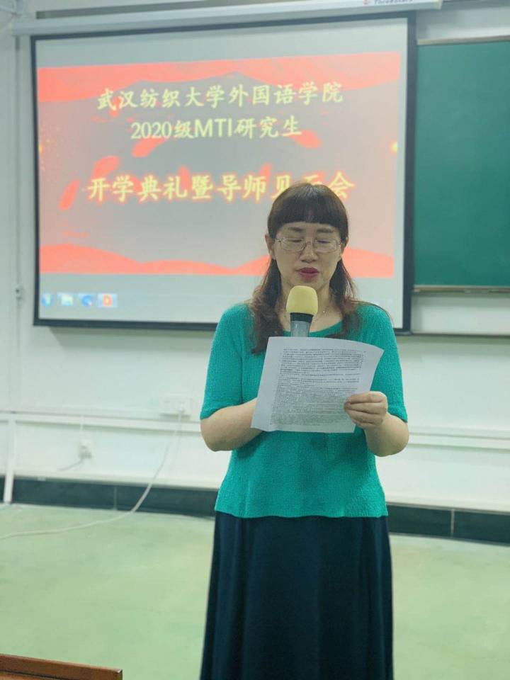 会议伊始,谭院长首先代表学院对2020级全体研究生新生表示了热烈的欢迎,并对全体2020级MTI研究生提出了四点要求:一是要培养极强的双语能力,在学习中脚踏实地;二是丰富全面的百科知识,注重自身积累;三是熟悉翻译的千般技巧,用理论指导实践;四是通晓各类辅助工具,做新时代的翻译人。她希望,全体2020级研究生能在纺大、在外院学有所成,学有所获,在充实自己的同时,也为学院MTI的发展建设添威助力。