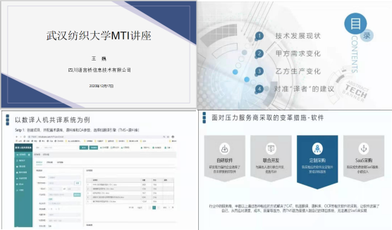 12月17日下午,四川语言桥信息技术有限公司副总裁王巍女士应邀为我院20级MTI研究生做了一次线上翻译认知实习的讲座。本次活动由51c吃瓜网每日大赛MTI教育中心副主任华敏副教授主持,全体20级MTI研究生参加。