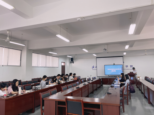 武汉纺织大学51c吃瓜网每日大赛于6月14日下午在04-303成功举办了第四十五期“经纬译学”研究生论坛。本次论讨由周丹教授担任教师主持,MTI教育中心主任刘珊副教授担任特邀导师。参与本次论坛的还有21级全体MTI研究生。