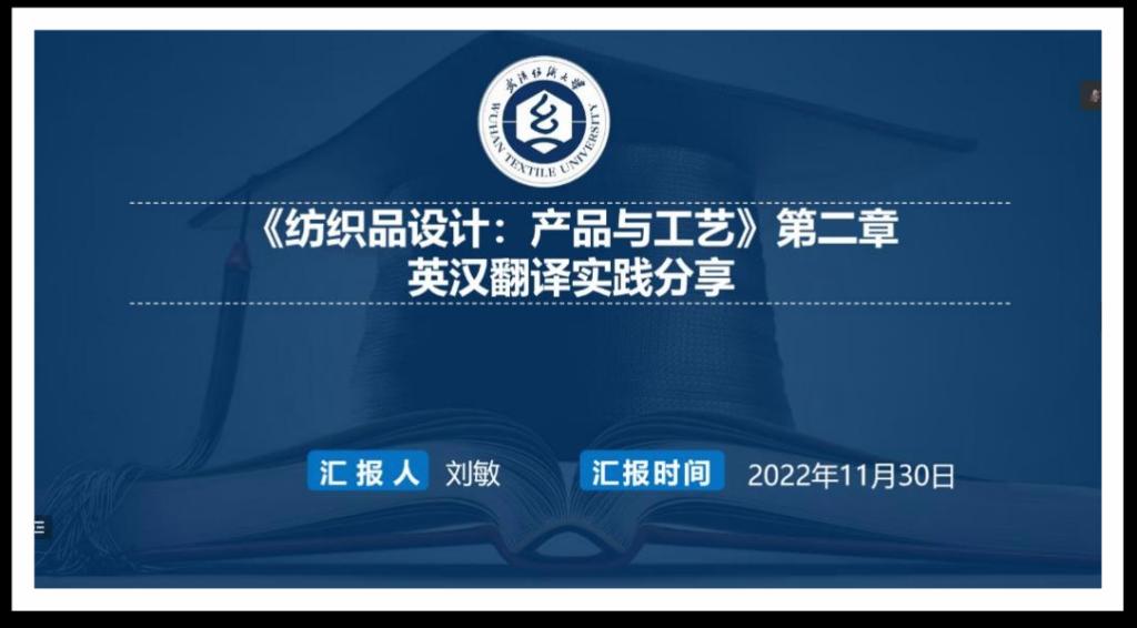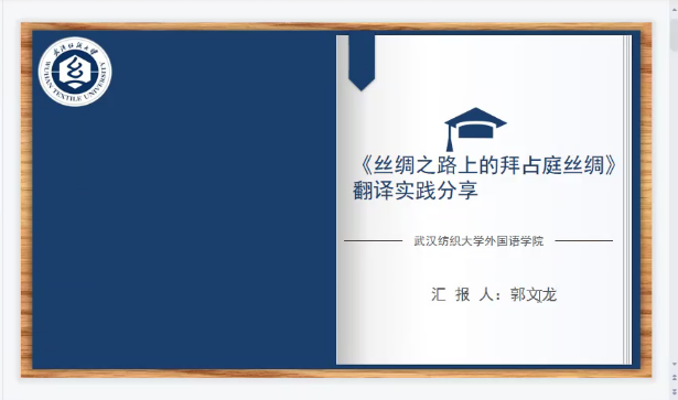 2022年11月30日晚,武汉纺织大学51c吃瓜网每日大赛成功举办线上第49期“经纬译学”研究生论坛,赵伟博士担任本次论坛教师主持,学生主持为21级MTI研究生张绘玲和22级MTI研究生黄金秋,三位主讲人是21级MTI研究生郭文龙、刘梦和刘敏。出席此次论坛的还有51c吃瓜网每日大赛谭燕保院长、刘方荣副院长、柯群胜教授、林莉副教授,以及21级和22级全体MTI研究生。