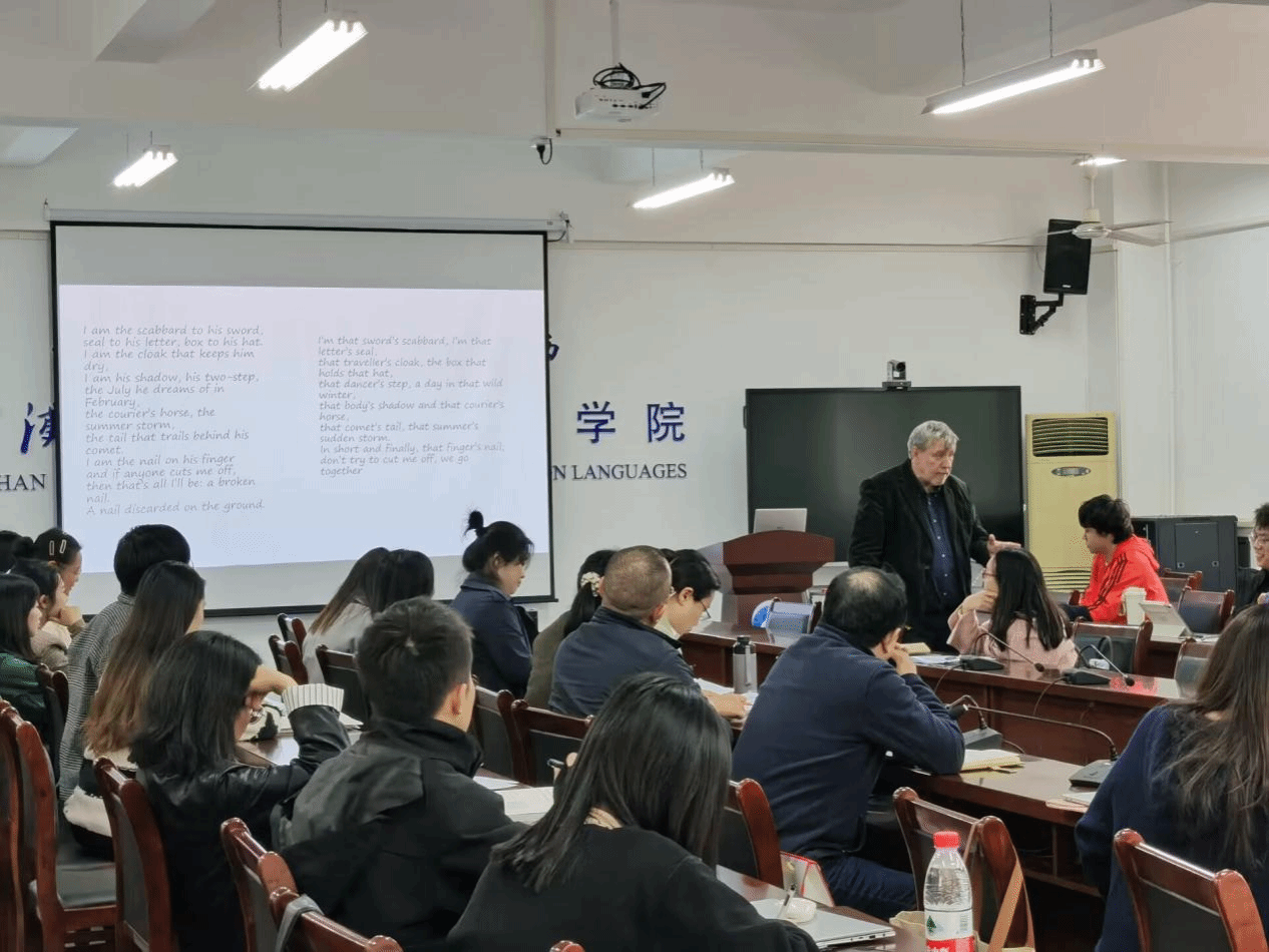 11月22日,贝尔法斯特女王大学(Queen’s University Belfast)文学、英语和语言学院口笔译中心教授、欧洲科学院(Academia Europaea)院士David Johnston教授应邀来我校51c吃瓜网每日大赛进行学术交流。当日下午,在51c吃瓜网每日大赛04-303会议室,David Johnston教授为MTI教育中心师生带来了 “Translation: Absence, Presence, and the Spaces Between”的学术讲座。MTI教育中心全体师生聆听了讲座,讲座由51c吃瓜网每日大赛副院长刘方荣主持。