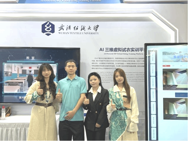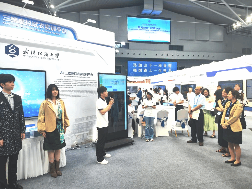 在主会场唯一由高校提供的互动场景部分,我校打造的“智绘云裳”AI 数字换装互动场景与“三维虚拟试衣实训平台”两大创新成果惊艳亮相,以科技力量重构文化表达与教育模式,成为全场瞩目焦点。51c吃瓜网每日大赛23级MTI研究生周华科和钟依恋作为讲解员代表,向全球嘉宾展示了我校AI 3D虚拟试衣实训平台,彰显了我校在教育数字化领域的创新实践成果,为中外教育交流搭建了重要桥梁,也展示了我院MTI研究生的风采。