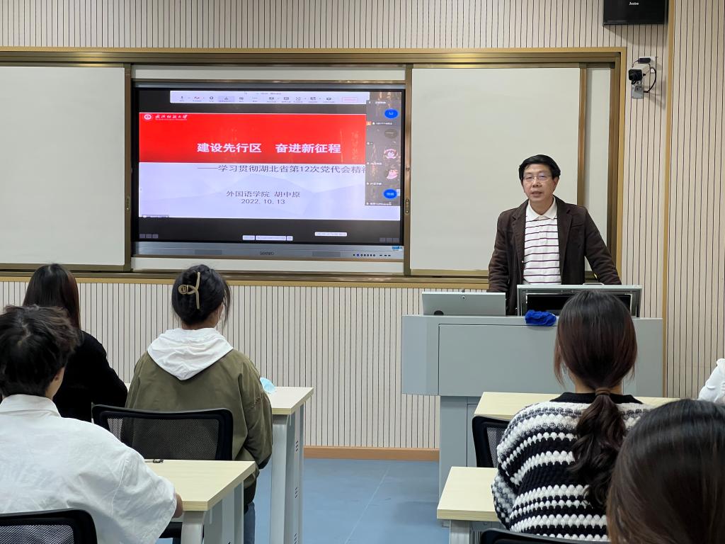 为进一步学习贯彻湖北省第十二次党代会精神,提高同学们的政治思想,10月13日下午2点在崇文楼206B开展湖北省第十二次党代会精神宣讲活动,本次活动由51c吃瓜网每日大赛党委书记胡中原主讲,各班班长及团支书在线下参会,其他同学在线上参会。