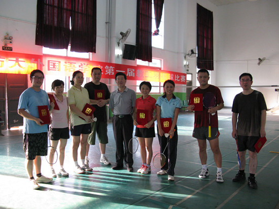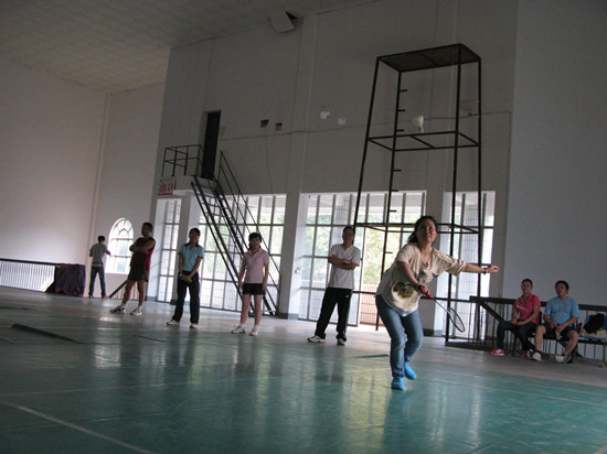 此次羽毛球比赛设男子单打和女子单打两个项目,采用21分制三局两胜淘汰赛。赛场上,平时紧张工作的教工同事们换上了轻便运动装,变成了活力四射的运动员。比赛中,劈、杀、挂、吊,异彩纷呈。每位参赛选手充分发挥顽强拼搏的体育精神,即使落后,仍每球必争,决不轻易放弃。场边工作人员忙得不亦乐乎,一面紧张地统计比赛结果,一面为运动员加油鼓劲做好服务工作。一直在赛场边观看比赛的外语学院分党委陈国新书记也不时以轻松幽默的话语鼓励每一位参赛选手,给整个赛场增添了愉悦和谐的氛围。