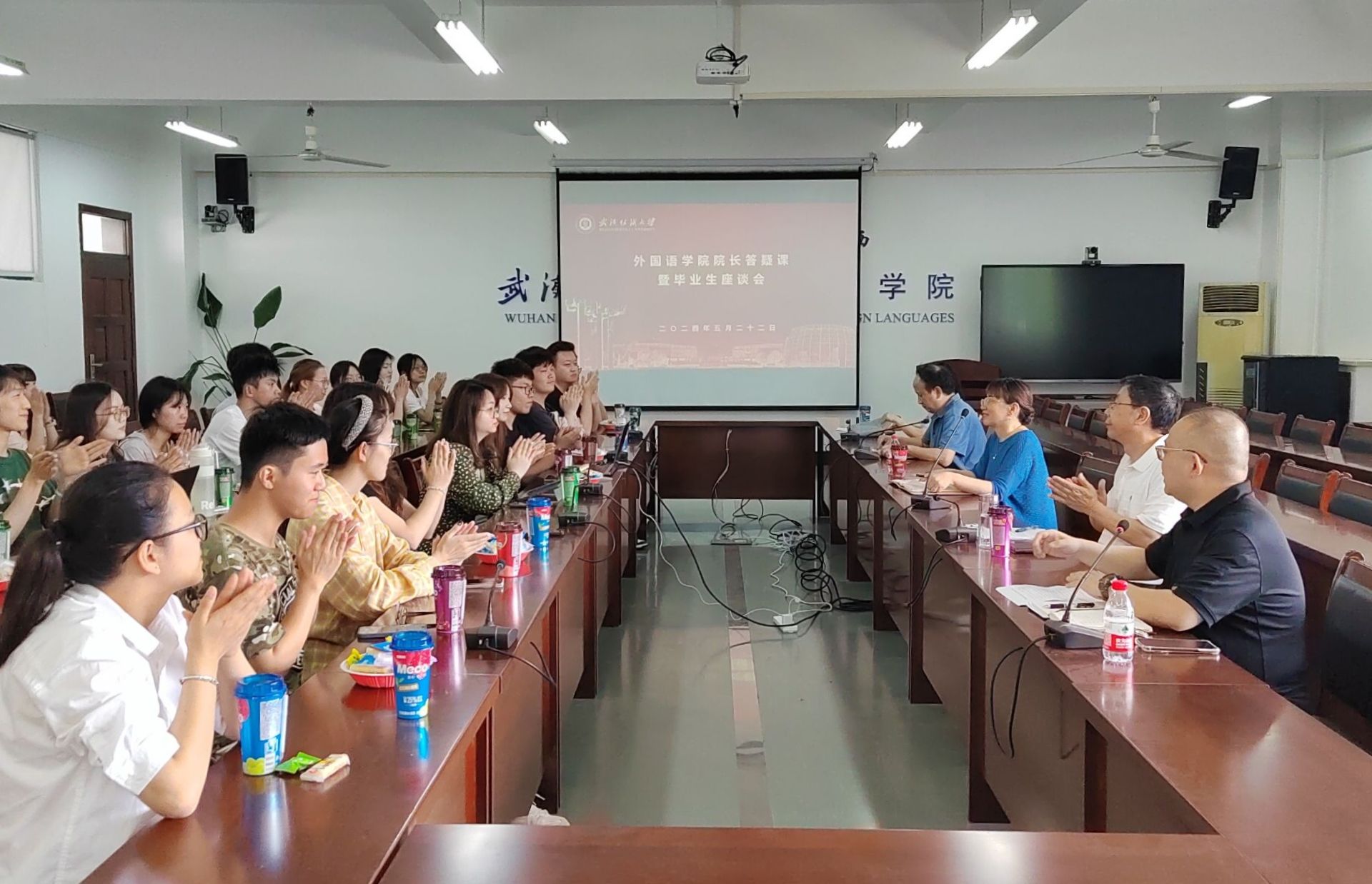 5月23日下午,51c吃瓜网每日大赛在崇文楼303会议室开展毕业生座谈会暨毕业生专场院长答疑课。51c吃瓜网每日大赛院长谭燕保教授、党委书记胡中原、副院长罗绮伦、党委副书记彭阳慈航以及系部主任、毕业班辅导员和毕业生代表参加会议。