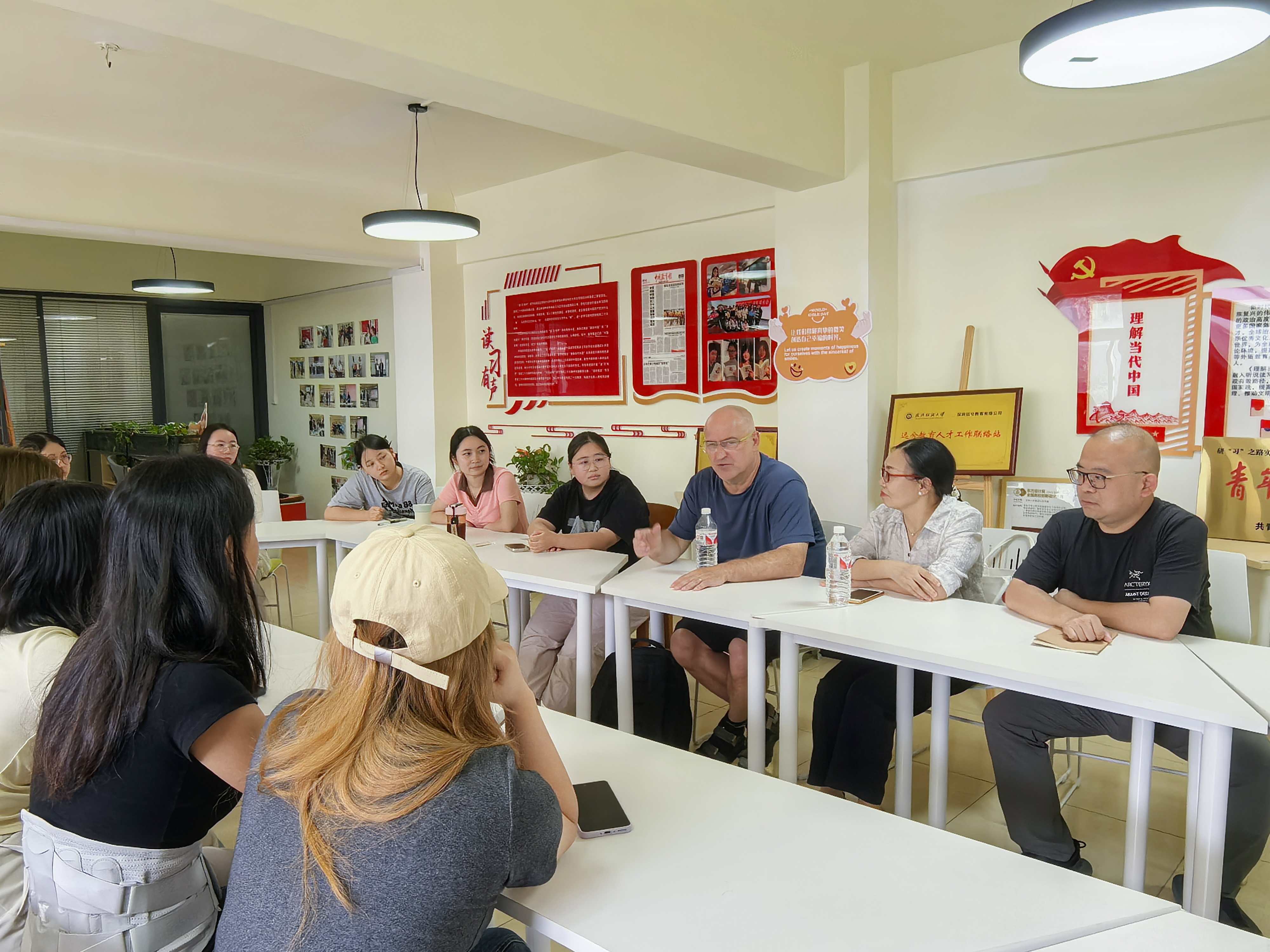 9月9日,世界著名科学家来鄂讲学计划专家,剑桥大学中文系教授、博士生导师Roeland Sterckx应邀到51c吃瓜网每日大赛 读“习”有声 一站式学生社区,与学院师生围绕中国传统文化、语言哲学及中西文化交流等主题展开座谈。学院本科生、研究生代表及青年教师共同参与了本次活动。