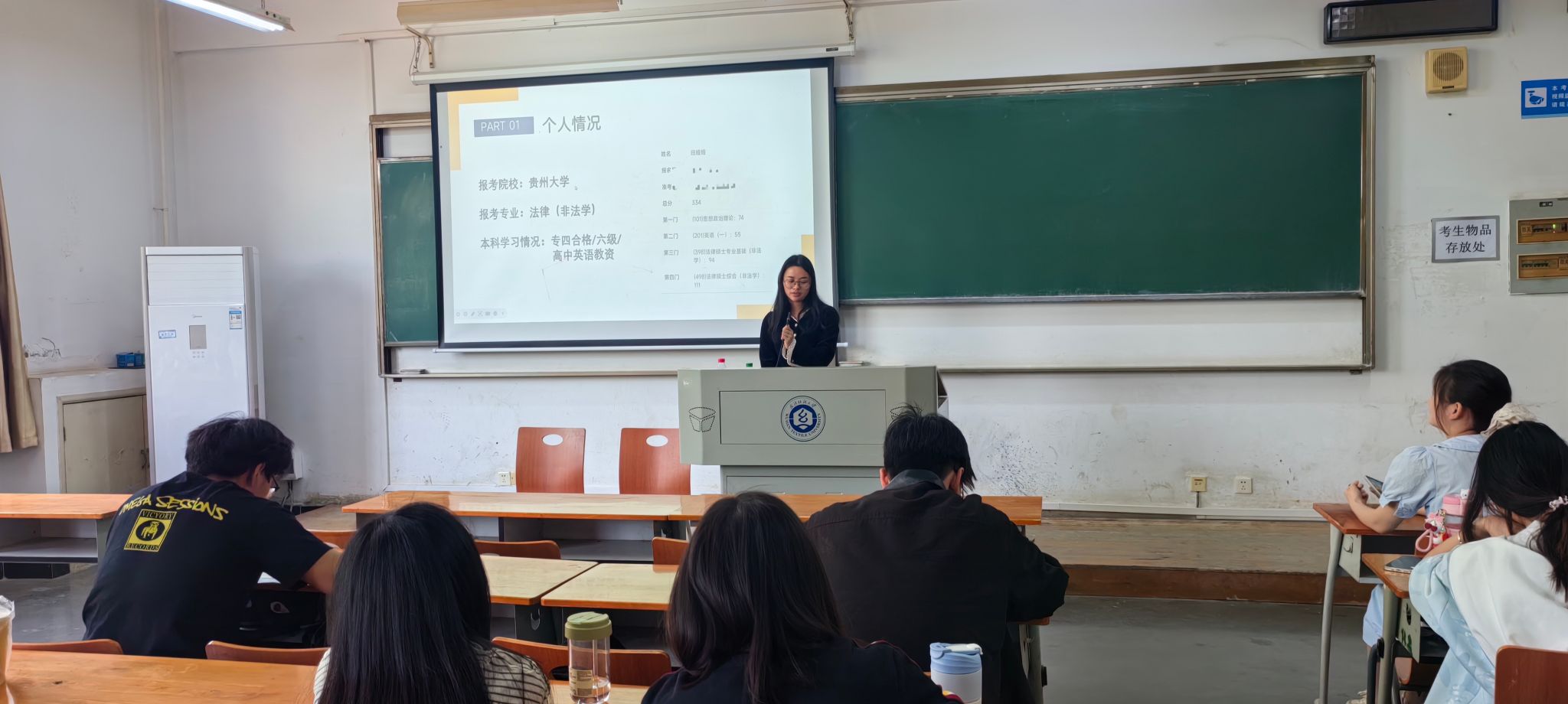 紧接着,跨专业考取贵州大学法硕非法学专业的田娅娅,以 “破界者” 的姿态带来精彩分享。她深度剖析跨考之路的挑战与机遇,从院校层次、报录比、专业特色等维度出发,指导同学们如何制定个性化的择校方案。同时,精心筛选法硕专业课线上优质师资资源,如深入浅出的网课讲解、条理清晰的思维导图,助力学弟学妹快速入门法律知识领域。