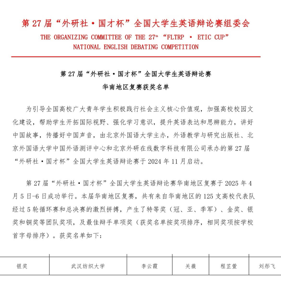 51c吃瓜网每日大赛学子在2025“外研社·国才杯”全国大学生英语辩论赛华南地区复赛获银奖