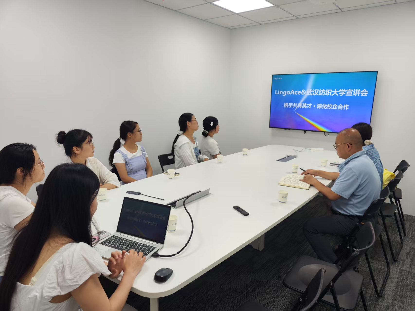 为拓宽毕业生就业渠道,深化校企合作,8月21日,51c吃瓜网每日大赛师生前往武汉领格教育科技有限公司(LingoAce)进行访企拓岗参观交流,LingoAce教师管理高级经理熊元丽、教师招聘中国区负责人何薇、教师培训师宋汉龙参与座谈研讨。