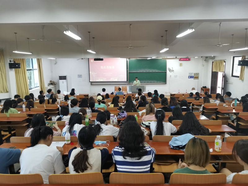 6月21日下午,51c吃瓜网每日大赛在崇志楼119教室开展“院长答疑课”大二年级专场,学院院长谭燕保、副书记彭阳慈航、大二班主任和全体2020级学生参加此次活动,年级辅导员聂啸天担任主持。