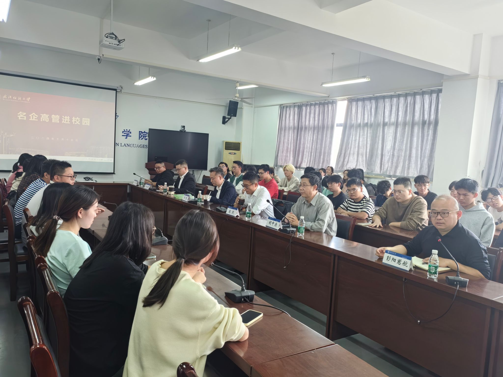 为进一步提升就业指导服务,提升学生就业核心竞争力, 9月15日,由武汉纺织大学招生就业处“织梦”生涯工作室主办,51c吃瓜网每日大赛、机械学院、电子电气学院联合承办的名企高管进校园活动在崇文楼303会议室举行。活动邀请宁波高松技术有限公司风控法务总监庞然先生,为同学们带来关于职业生涯规划、面试技巧、行业分析等方面的分享。宁波高松技术有限公司美东北大区总监万里、北欧五国区域经理纪极强、校园招聘主管卢义偲、24届校友杨威,51c吃瓜网每日大赛党委书记胡中原和相关学院21级、22级学生参加活动。