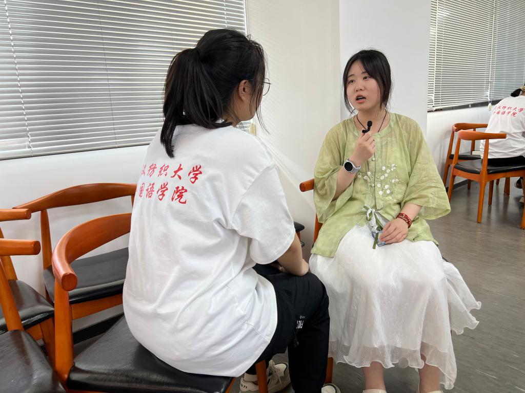 “Chu culture”“Phoenix in Chu culture”“Phoenix in Chu culture”……一位位非遗传承人一遍遍和同学们一起发音、纠正、再发音。7月2日,武汉纺织大学51c吃瓜网每日大赛大学生暑期社会实践团队研“习”之路实践团赴湖北省非物质文化遗产保护中心和湖北省非物质文化遗产研究中心,与传承人们交流互鉴,开启了一场开阔视野、丰富知识的精神之旅。大学生、留学生与传承人们一起,零距离体验荆楚非遗,探讨荆楚文化外译,感受荆楚文化魅力。院党委副书记彭阳慈航、大学英语第三教学部主任郑亚娟副教授和研“习”之路 实践团全体成员参加调研。
