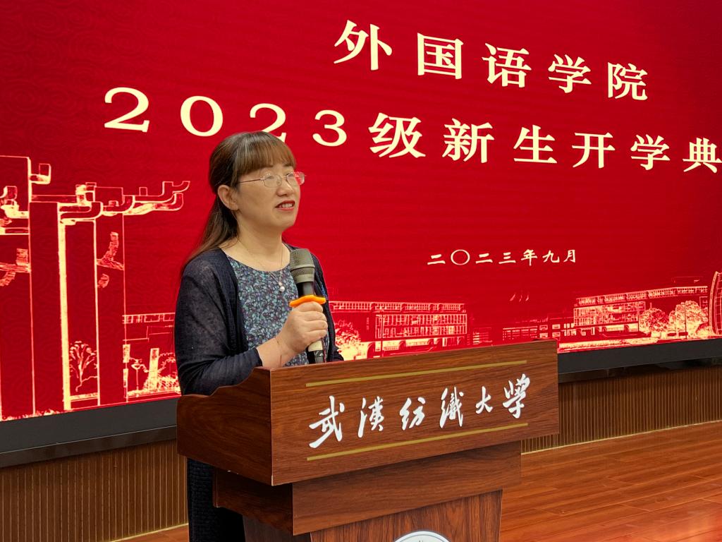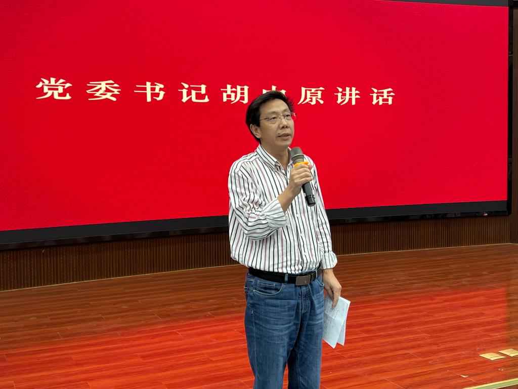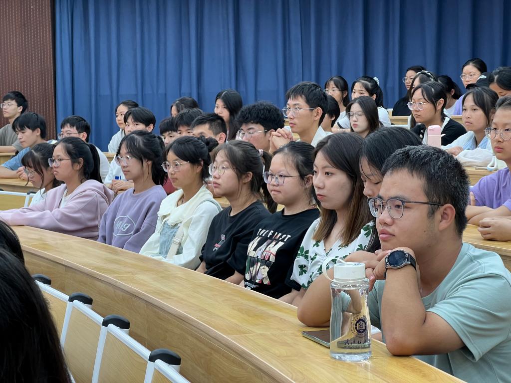 学院党委书记胡中原代表学院欢迎2023级新同学的到来,并寄语新生“心心相印,心想事成”。第一个“心”指同学们高考上岸的喜悦之心、探求知识的渴望之心、面对未来的憧憬之心,同时也要求新生要注意调节自身的喜悦,养成终身学习的品质;第二个“心”指老师的仁爱之心,全院教师会用心用情培养好每一位同学。最后勉励新生多读书,读好书,脚踏实地,勇毅前行。