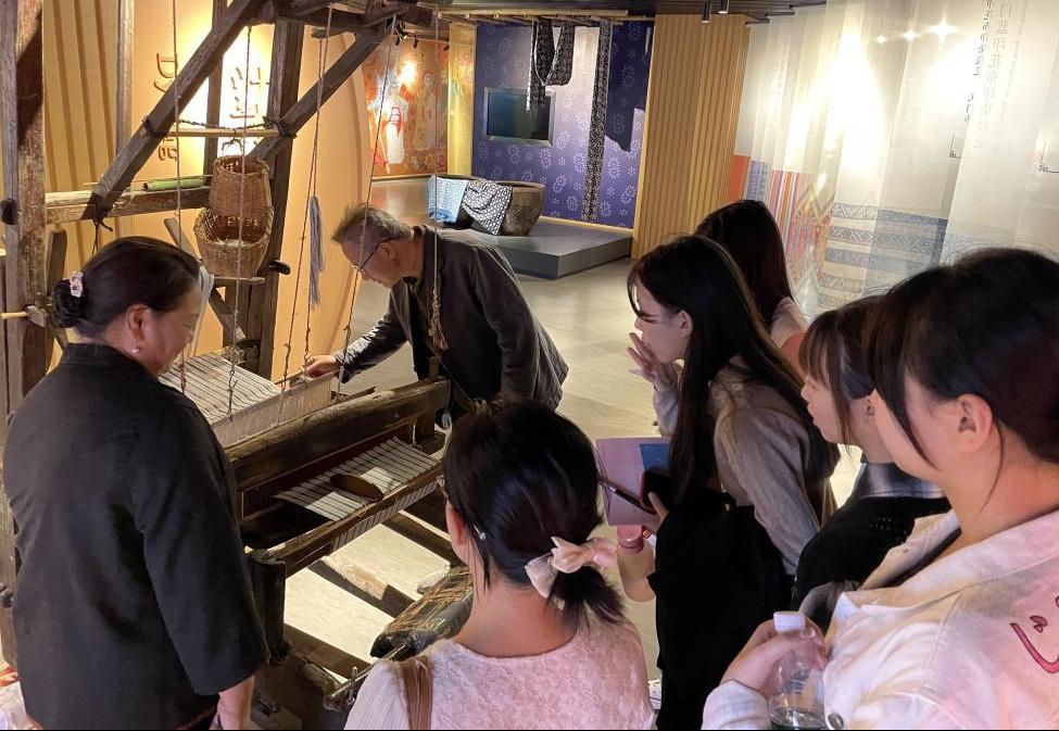 为培养学生爱国爱校情怀,助力纺织特色文化传播,10月20日下午武汉纺织大学外语学院“服务地方非遗文化传播”大学生创新创业团队在柯群胜教授的带领下前往荆楚纺织非遗馆,亲身接触和体验纺织文化的魅力。
