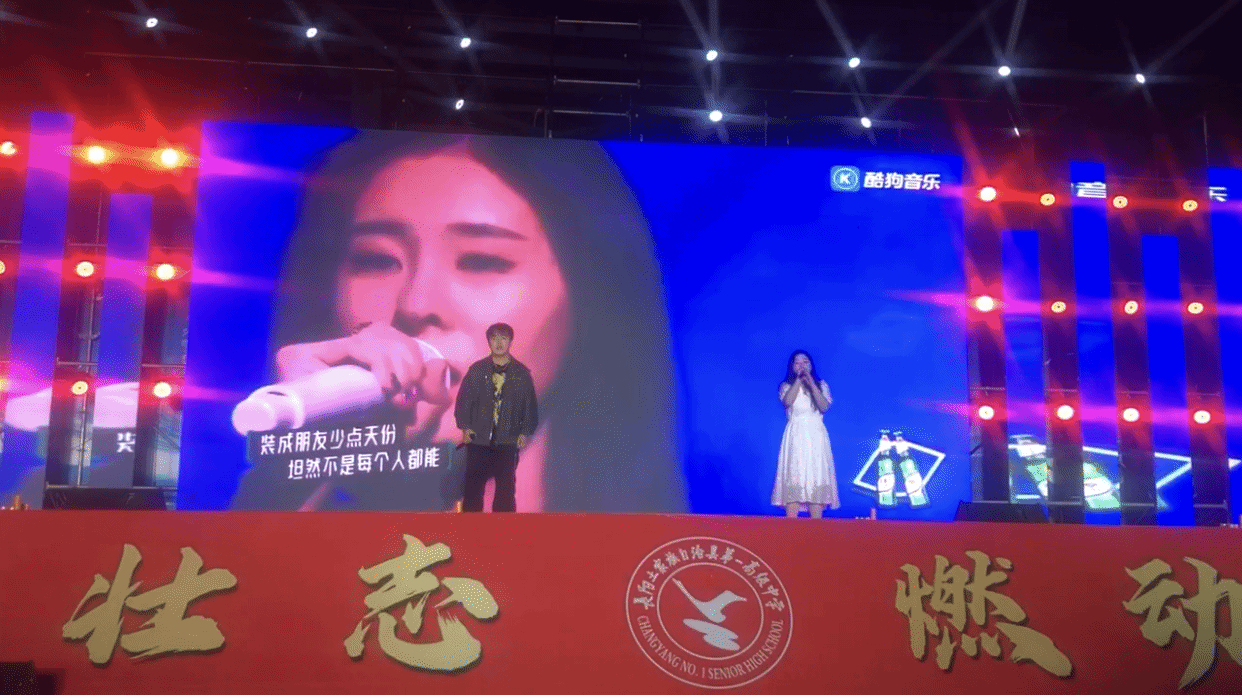 长阳一中作为我校重要的生源地中学,一直与我校保持着密切联系。在此次科技艺术节晚会上,当两名商务英语专业学生走上舞台,现场气氛瞬间被点燃。他们深情对唱《指纹》,悠扬的歌声飘荡在校园上空。他们用美妙的嗓音展现出独特的艺术魅力,每一个音符都传递着青春的活力与激情,台下观众沉浸其中,不时爆发出热烈的掌声。