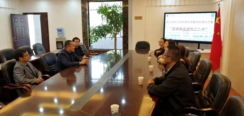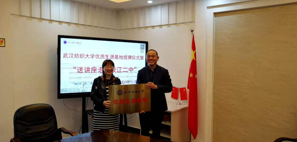 会前,在枝江二中会议室,谭燕院长一行与枝江二中班子成员围绕优质生源基地建设开展了座谈交流。谭燕保院长和曹刚副院长从学科优势和办学特色等角度,着重介绍了武汉纺织大学和重点建设学科及专业。枝江二中领导班子表达了对武汉纺织大学办学水平的高度认可,并结合枝江二中学生的基本情况,提出要进一步强化“高校—中学”之间的合作交流,通过优质生源基地建设,促进学校的人才培养和人才输出。交流结束后,双方举行了“武汉纺织大学优质生源基地”挂牌仪式,双方领导签订了《武汉纺织大学携手生源中学共建优质生源基地协议书》。