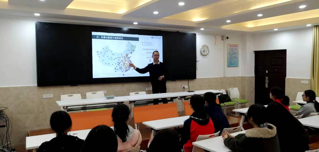 曹刚在枝江二中以《现代生活中的纺织非物质文化遗产》为题作专题人文讲座,此次讲座结合我校专业背景及特色,从“文化遗产简介、纺织非遗分布及类别、纺织类非物质文化遗产审美意蕴、现代纺织非遗在生活中的转变、非遗与旅游文创的结合”五个方面阐述了现代纺织非遗,近一小时的讲座,内容丰富、话语质朴、贴近生活,为到场的教师和学生展示了非遗艺术的魅力,让大家深受感染与启发。讲座的最后,曹刚副院长提出希望同学们要有坚定的文化自信,更好传承中华传统文化。
