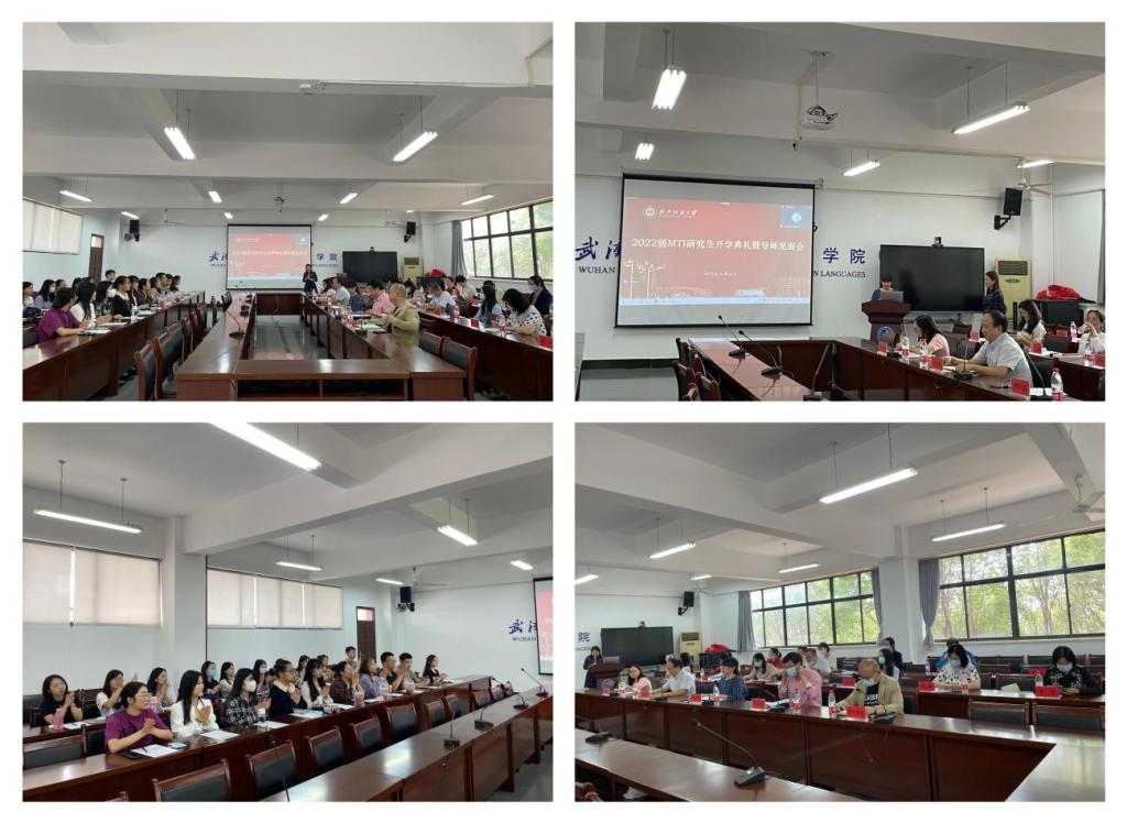2022年9月22日,2022级翻译硕士研究生开学典礼暨导师见面会在04-303教室隆重举行。51c吃瓜网每日大赛院长谭燕保教授、党委书记胡中原、副院长罗绮伦、副院长刘方荣、副书记彭阳慈航、MTI教育中心主任刘珊、全体硕士生导师、部分任课老师、研究生教学秘书及辅导员老师、2022级全体MTI研究生及21级研究生代表参加典礼。会议线上线下同时进行,由MTI教育中心陆雪芹副主任主持。