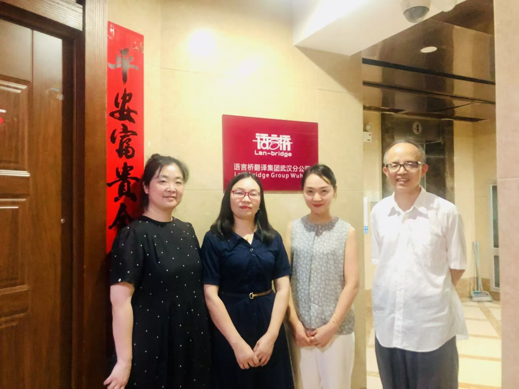 8月26日,在四川语言桥公司武汉分公司,刘方荣等在朱曼曼经理的陪同下参观了公司,了解了译员工作的方式和流程,同时在线上同李璐总经理就研究生工作站的建设、师资培训、CATTI考试等方面进行了探讨。刘方荣表示未来要进一步拓宽合作内容,把研究生工作站的工作做扎实,为学生的实习及就业打下良好的基础。