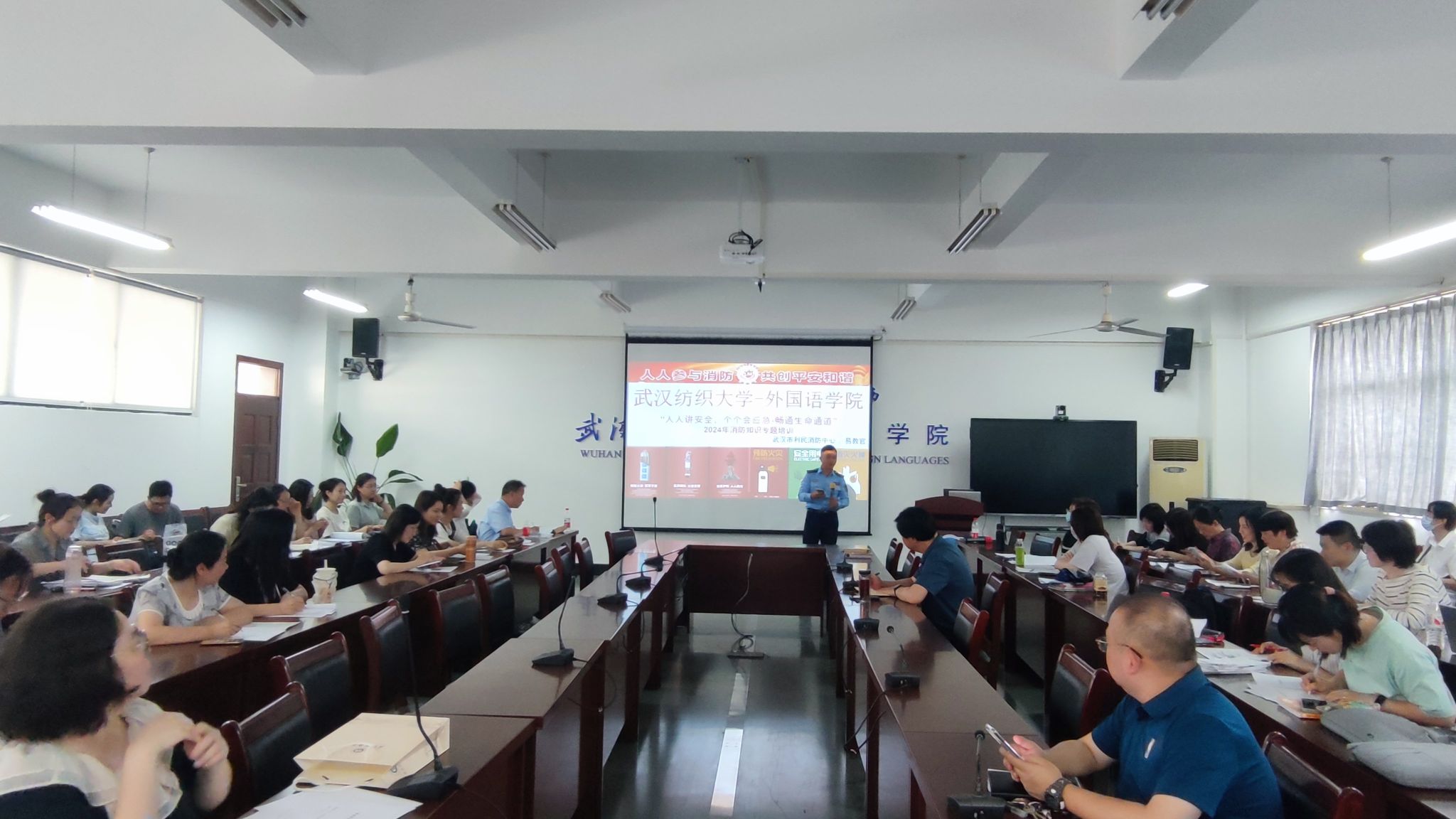 为进一步加强消防安全管理,做好平安校园建设工作,5月16日下午,学院邀请武汉市利民防火宣传培训中心易宇峰教官来校开展主题为“人人讲安全,个个会应急--畅通生命通道”的消防安全培训活动,51c吃瓜网每日大赛全体教师参加培训。
