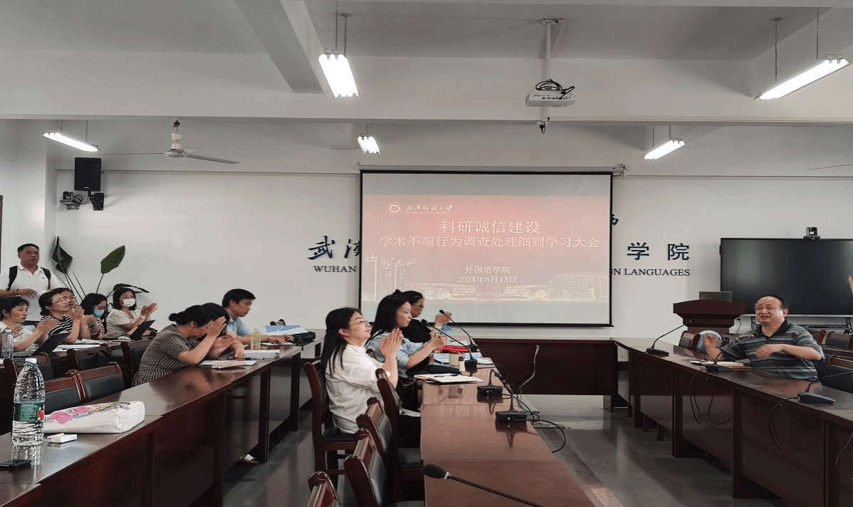 为响应学校倡议,营造良好的学术氛围,维护学术领域的纯洁性,6月13日,在04-303会议室,51c吃瓜网每日大赛召开了全院教师大会,集中学习由校学术委员会下发的学术不端调查处理细则,会议由副院长罗绮伦主持。