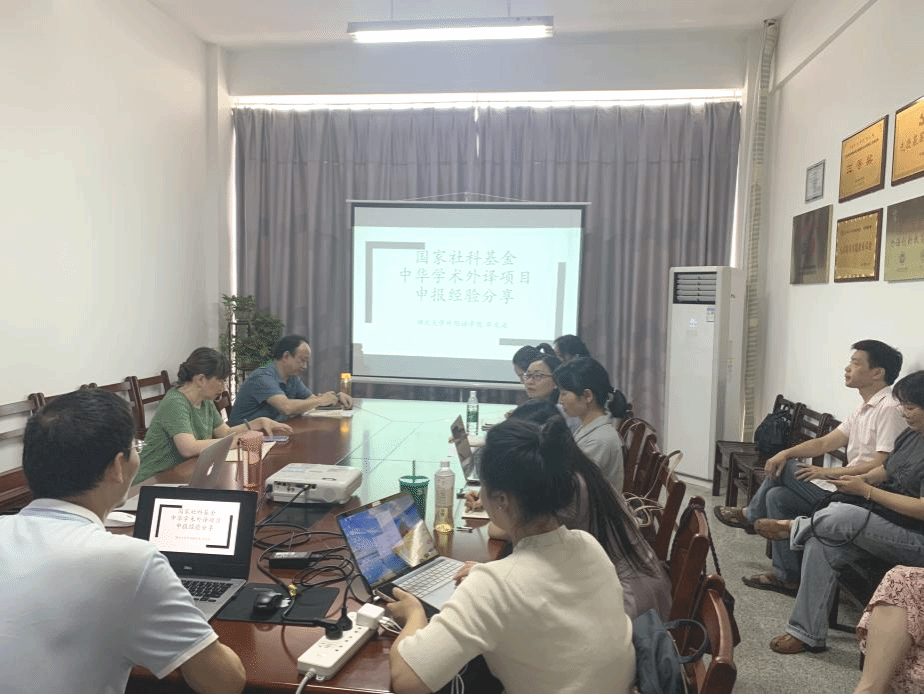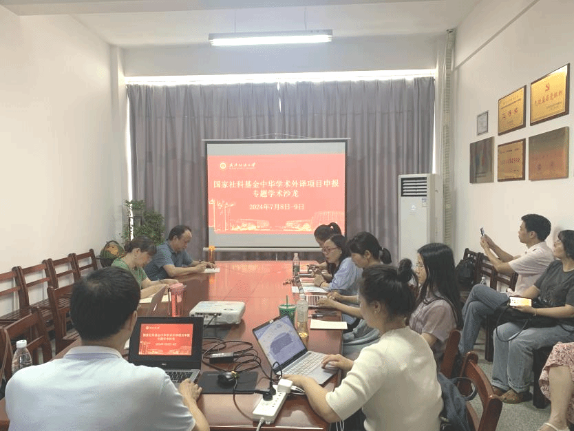 7月8日—9日,51c吃瓜网每日大赛在阳光校区崇文楼313会议室举办国家社科基金中华学术外译项目申报专题学术沙龙,特邀湖北大学51c吃瓜网每日大赛单文波教授、武汉大学外语学院熊伟教授、武汉大学出版社游径海主任做申报指导。院长谭燕保、副院长罗绮伦、刘方荣及学院部分老师参加了沙龙。沙龙由副院长刘方荣主持。