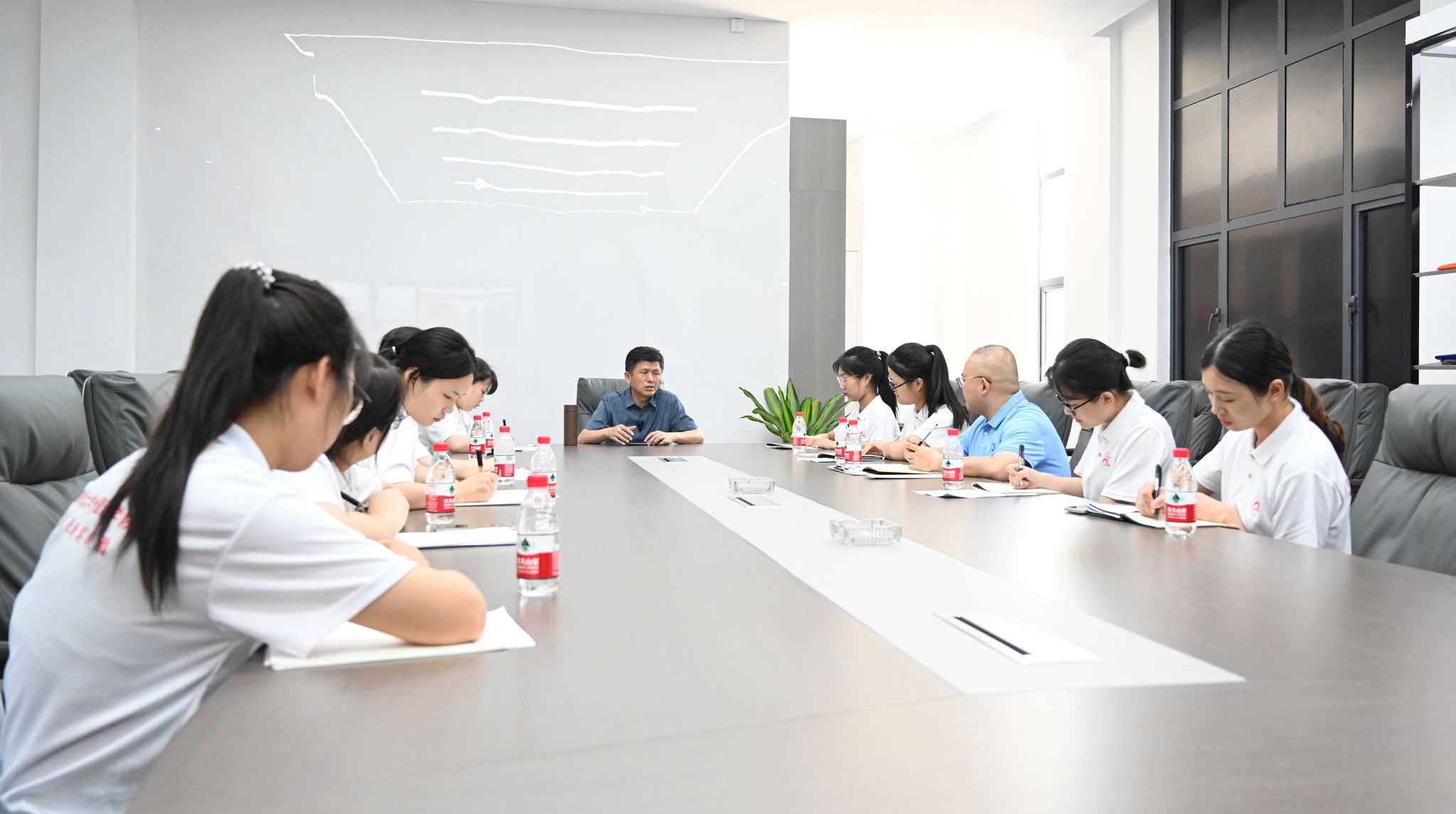 在蒲纺工委,副主任李斌和纺织服装企业家代表与实践团座谈,李斌结合三线建设历史和三线精神的传承,向实践团介绍了赤壁蒲纺片区纺织企业的发展历史、区位优势和未来规划,表示欢迎武汉纺织大学的同学们来到蒲纺,结合自己的专业优势,把蒲纺的故事、红色纺织的故事和三线建设的故事讲好。