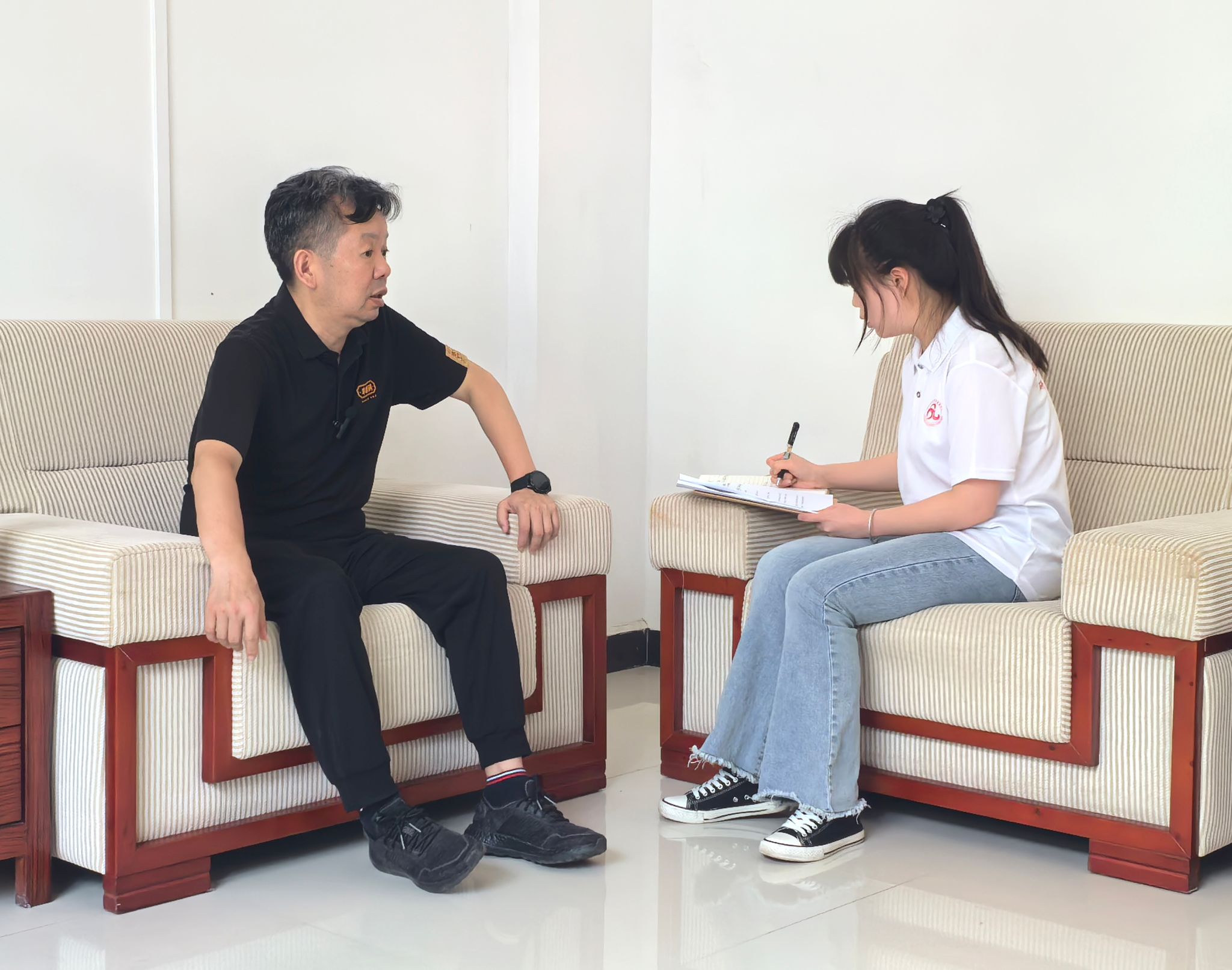 “蒲纺在我们中国纺织史、三线建设史、国企发展史上都占有非常重要的位置。”蒲纺党工委书记、工委主任杨昆明说道。在谈到三线精神时,杨昆明深情地说:“蒲纺的发展史也是一部奋斗史。”他回忆了蒲纺人如何在艰苦的环境中,凭借“艰苦奋斗,无私奉献”的精神,在山沟里建成十里纺城。杨昆明表示:“三线建设精神是任何一个时代都是需要的。无论是做企业还是做学问,都需要兢兢业业、一步一个脚印。”他以恒瑞纺织企业为例,讲述了企业如何从无到有,发展成为行业领先的故事。“蒲纺有过去的使命,更有现在的发展方向。”杨昆明展望蒲纺在康养、文旅、大数据产业等领域的发展潜力,并强调了三线精神在新时代的重要性。访谈最后,杨昆明鼓励实践团成员:“大家要多念书,更要脚踏实地做事。”并鼓励年轻人要追求卓越,从日常的一点一滴做起,逐步实现人生目标。