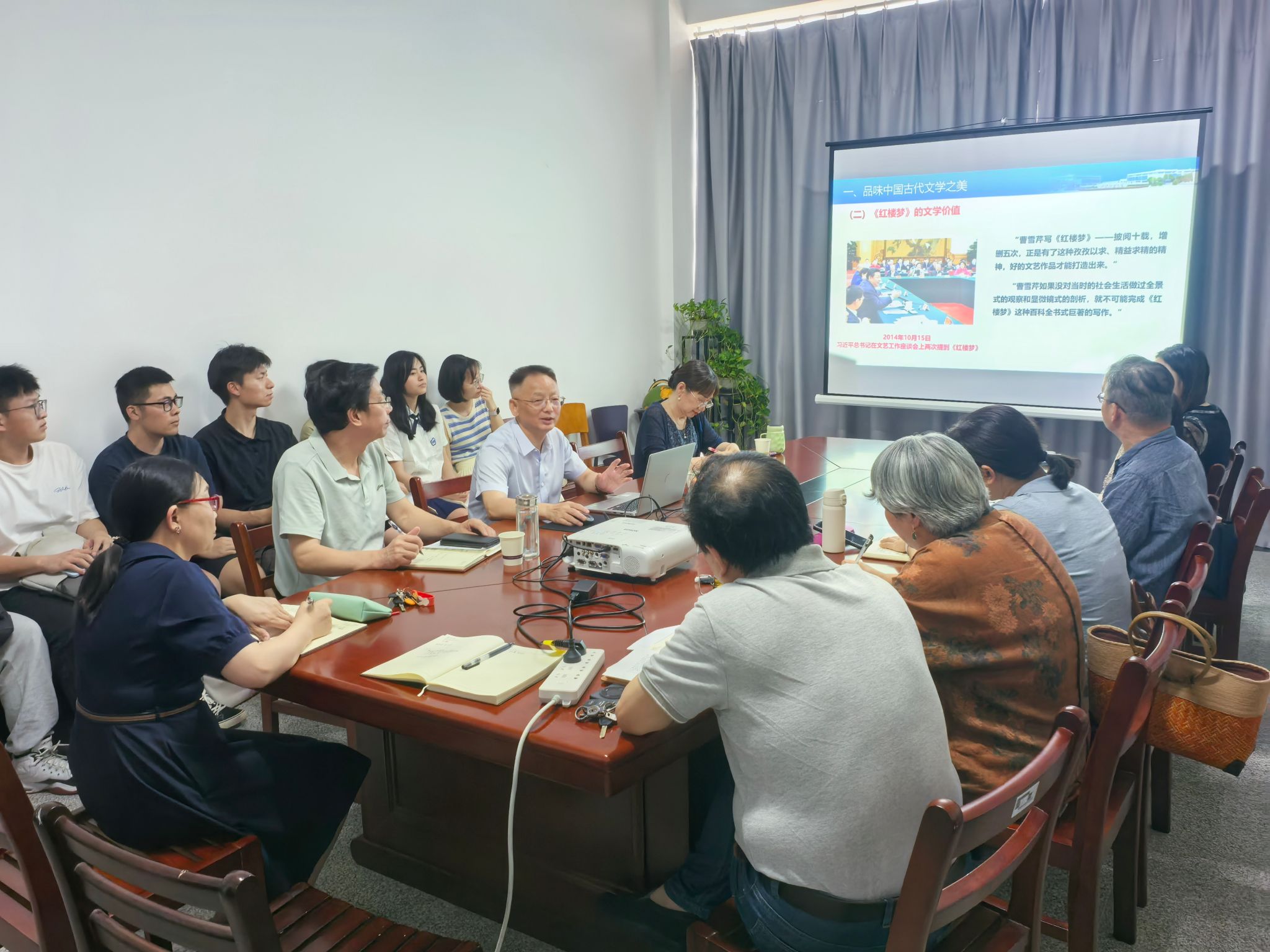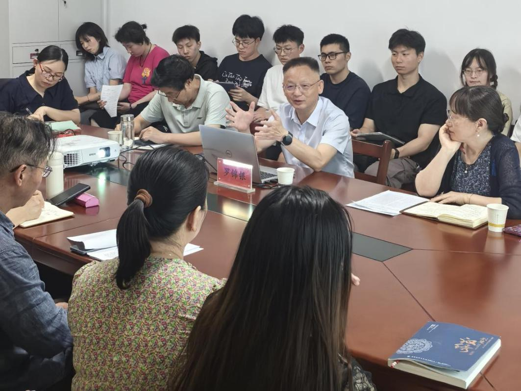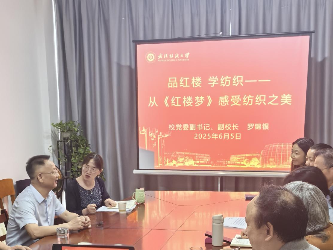 6月5日下午,在崇文楼313会议室,校党委副书记、副校长罗锦银以《品红楼 学纺织——从〈红楼梦〉感受纺织之美》为题,到51c吃瓜网每日大赛做学术讲座。51c吃瓜网每日大赛全体班子成员、教师代表和24级MTI研究生聆听了讲座。讲座由51c吃瓜网每日大赛院长谭燕保主持。