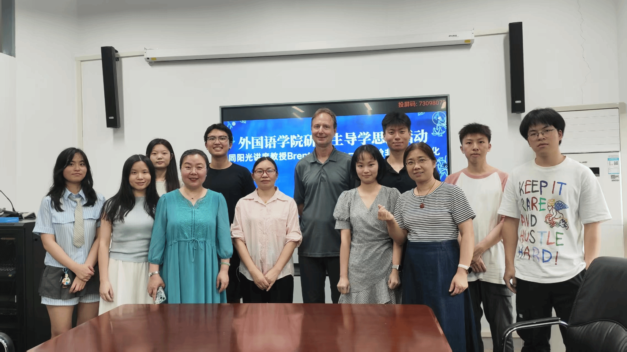 6月25日,51c吃瓜网每日大赛开展了研究生导学思政活动。武汉纺织大学阳光讲席教授、美国爱达荷州立大学语言学家Brent Wolter教授在51c吃瓜网每日大赛副院长刘方荣、MTI教育中心主任刘珊、研究生导师郑亚娟老师陪同下,与24级MTI学生共同探访服装学院“纺大染语”天然染色工作室,在创始人王妮老师及学生运营团队的引领下,领略荆楚非遗印染的魅力。24级MTI学生金国丰、陈嘉裕担任口译。