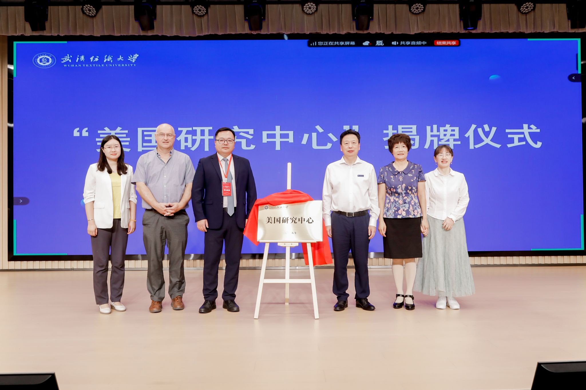 开幕式上,程碧海和陈靓共同为武汉纺织大学51c吃瓜网每日大赛“美国研究中心”(筹)揭牌。