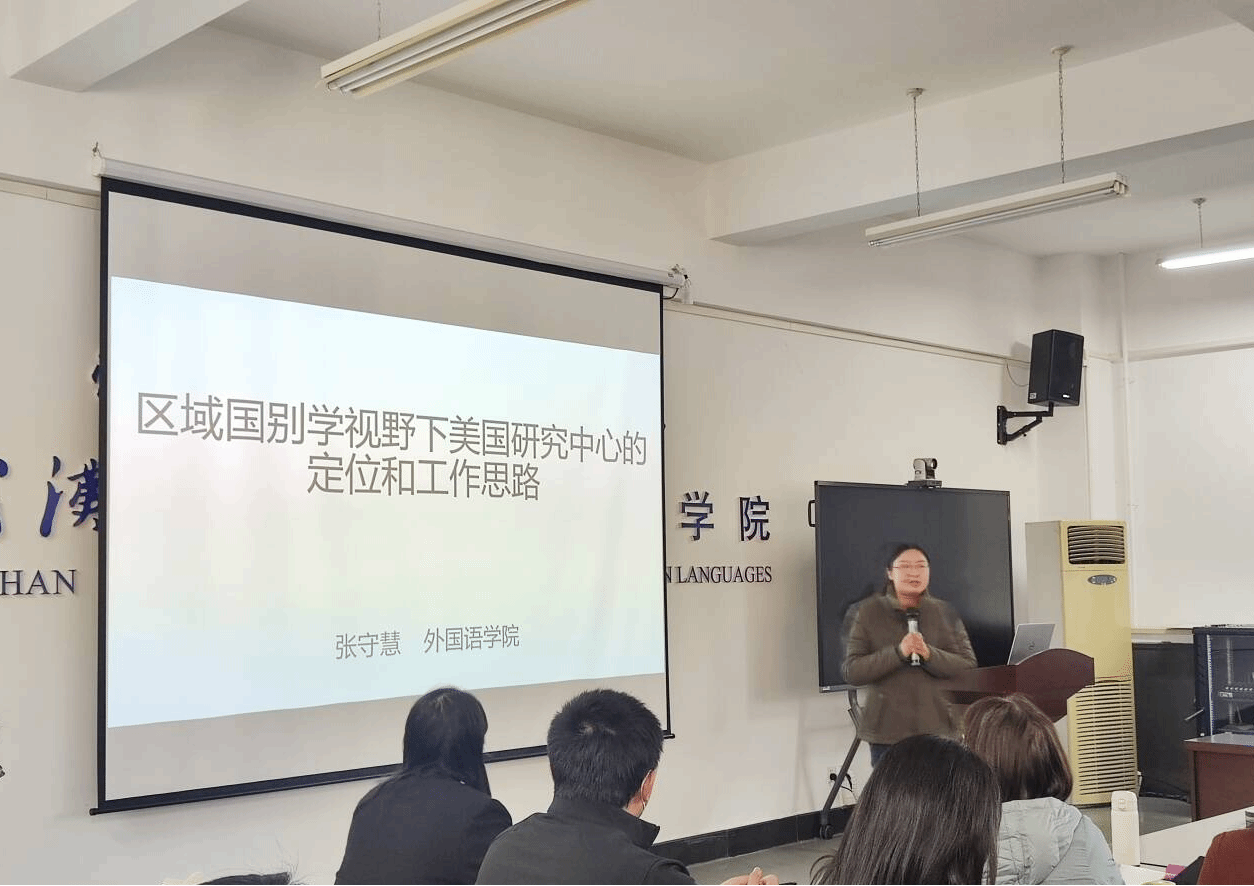 张守慧的发言主题是“区域国别学视野下美国研究中心的定位和工作思路”。作为美国研究中心的主任,她首先解释了学院成立美国研究中心的原因和必要性。她说中国是全球主要的纺织业出口大国,但是中国纺织业面临着全球挑战。美国仍然是世界唯一具备全方位全球影响力的大国,同时美国正在推动“纺织制造回流”,并有可能利用贸易规则重塑全球纺织链,美国的纺织业政策变化会直接影响中国。如果不研究美国的产业政策,中国就会在基础制造业领域陷入被动。张守慧还向学院老师们分享了外语学科与纺织方向结合可以做的科研方向和相关课题。