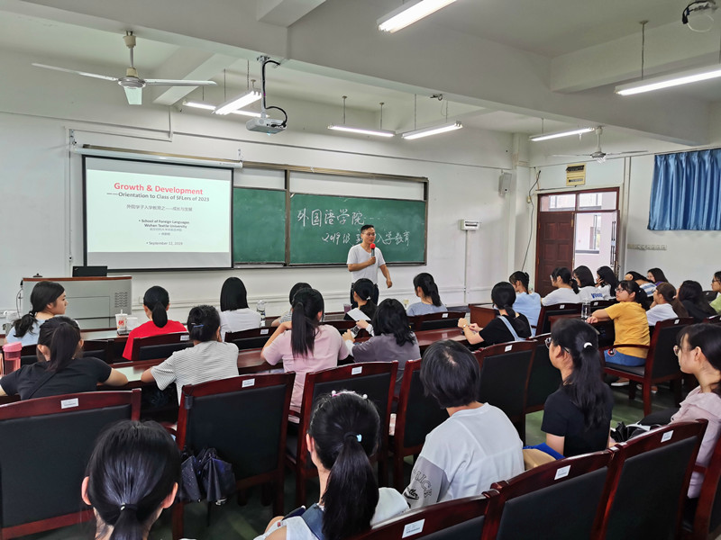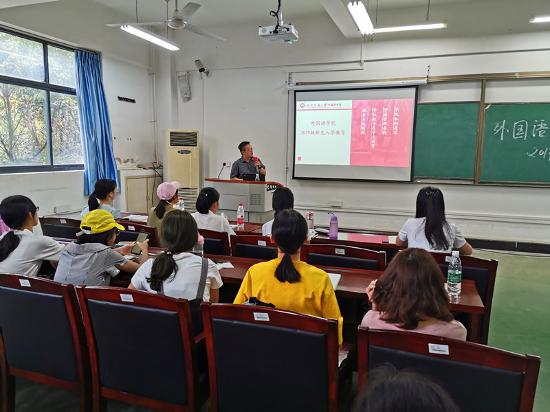 9月11日上午,51c吃瓜网每日大赛副院长罗绮伦主讲入学教育第三课——专业发展教育。罗院长以全英文交流的方式与2019级新生们进行交流,积极引导新生们用英语进行交流发言,这让新生们感觉到耳目一新。罗院长详细介绍了英语、商务英语专业的人才培养方案内容,向新生们讲解了各类课程学分设置的目的和意义。他希望2019级新生们能尽快转变角色,适应专业发展需求,积极调整学习状态,为自己的大学四年做一份详细的学习规划。