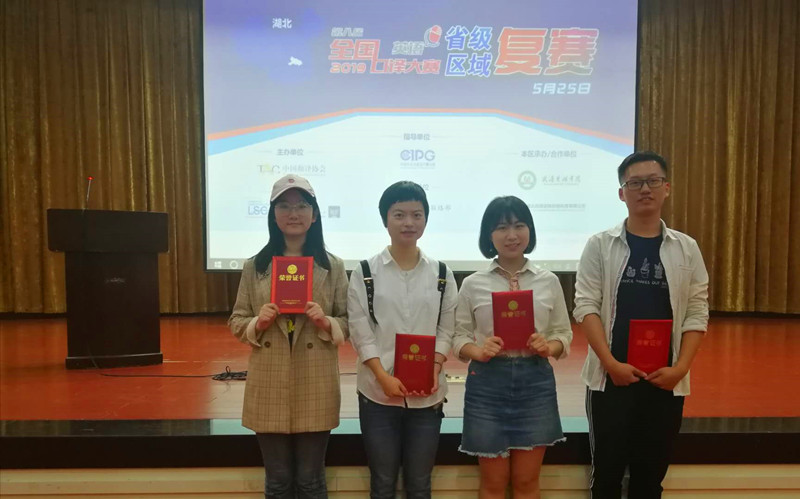 5月25日,由中国翻译协会主办,东湖学院承办的第八届全国口译大赛(英语)湖北赛区复/决赛在江城武汉拉开帷幕,来自武汉大学、华中科技大学等湖北30所高校的110名研究生、本科生参加了此次比赛。在51c吃瓜网每日大赛曹婷老师指导下,我校选派的四名选手喜获佳绩,曹婷老师荣获“优秀指导教师”奖。