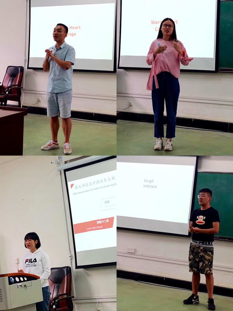 演讲活动结束,纺大英语辩论社在313会议室继续组织了一场英文脱口秀活动。由51c吃瓜网每日大赛朱倩同学担任主持,在脱口秀活动过程中,同学们围绕“向往的大学生活”、“向往的未来生活”以及“完美伴侣”等主题,用英文各抒己见,在思维的交流与碰撞中,同学们明确了大学的发展方向,收获成长的同时增强了自身的英语语言表达能力。辩论社指导老师吴志杰、余演、李云霞最后谈了自己参加活动的感受,并提出了关于演讲活动的改进意见,同学们纷纷表示获益良多,会充分总结经验,为办好下一次活动积极准备。