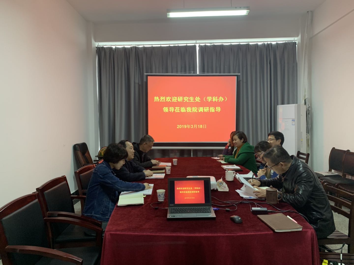 3月18日,校研究生处领导班子莅临51c吃瓜网每日大赛调研指导MTI评估和研究生党建与思想政治教育工作,学院书记胡中原、院长谭燕保、副院长柯群胜、副书记王芳及MTI中心主任陈奇敏参加会议。