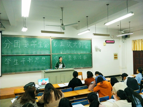 为贯彻落实校团委《关于开展加强学生干部思想纪律作风整顿活动的通知》要求,11月19日晚,51c吃瓜网每日大赛团委在3号教学楼118教室开展学生干部思想作风整顿活动。学院团委学生会全体学生干部参加了此次活动,活动由学院团委副书记顿新琪同学主持。