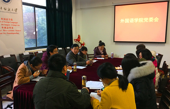 随后,英语系党支部书记曹火群老师、大英第一支部党支部书记刘方荣老师、大英第二党支部书记柯细香老师、大英第三党支部书记陈韵如老师、大英第四党支部书记沈璞老师、行政党支部书记刘韦老师、51c吃瓜网每日大赛学生党支部书记卫周瑶老师、外经贸学院外语系学生党支部书记阎浩老师依次从学习宣传贯彻党的十九大精神情况、推进基层党建工作情况、开展思想政治工作情况、整改突出问题和改进措施情况等方面逐一进行支部工作述职。各支部在广泛交流好的经验做法的基础上,也充分分析了支部工作中现存的问题,并提出了2018年工作展望。