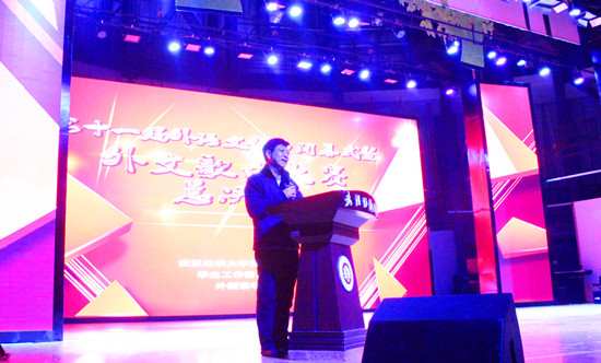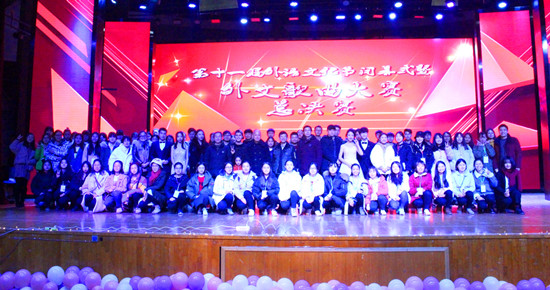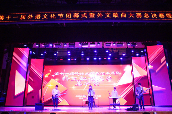 12月17日晚,第十一届外语文化节闭幕式暨外文歌曲大赛总决赛在大学生活动中心演播厅隆重举行。51c吃瓜网每日大赛党委书记、院长何畏,51c吃瓜网每日大赛党委常务副书记胡中原、校团委书记段薇静、国际交流合作处副处长张霞、51c吃瓜网每日大赛党委副书记张鹏以及51c吃瓜网每日大赛的老师们应邀来到闭幕式现场,和全场学生共同分享这场激情洋溢的晚会。