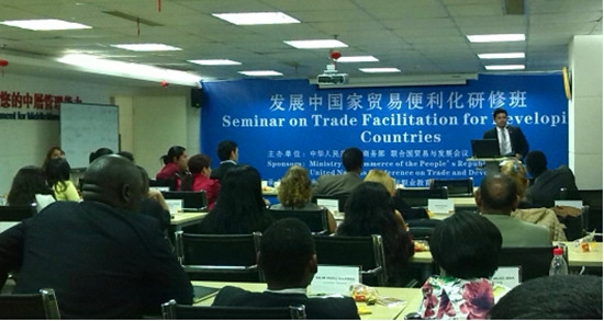 11月4日下午,由中华人民共和国商务部和联合国贸易与发展会议主办,湖北中欧国际职业教育培训中心(CEVTC)承办的“2015年发展中国家贸易便利化研修班”国际会议活动闭幕式在CEVTC中心举行。此次活动历时一个月,共有来自古巴、坦桑尼亚、尼日利亚等20多个发展中国家的43名政府官员参加。本次活动的外事接待和随团翻译工作由武汉纺织大学51c吃瓜网每日大赛和武汉纺织大学口译队完成。